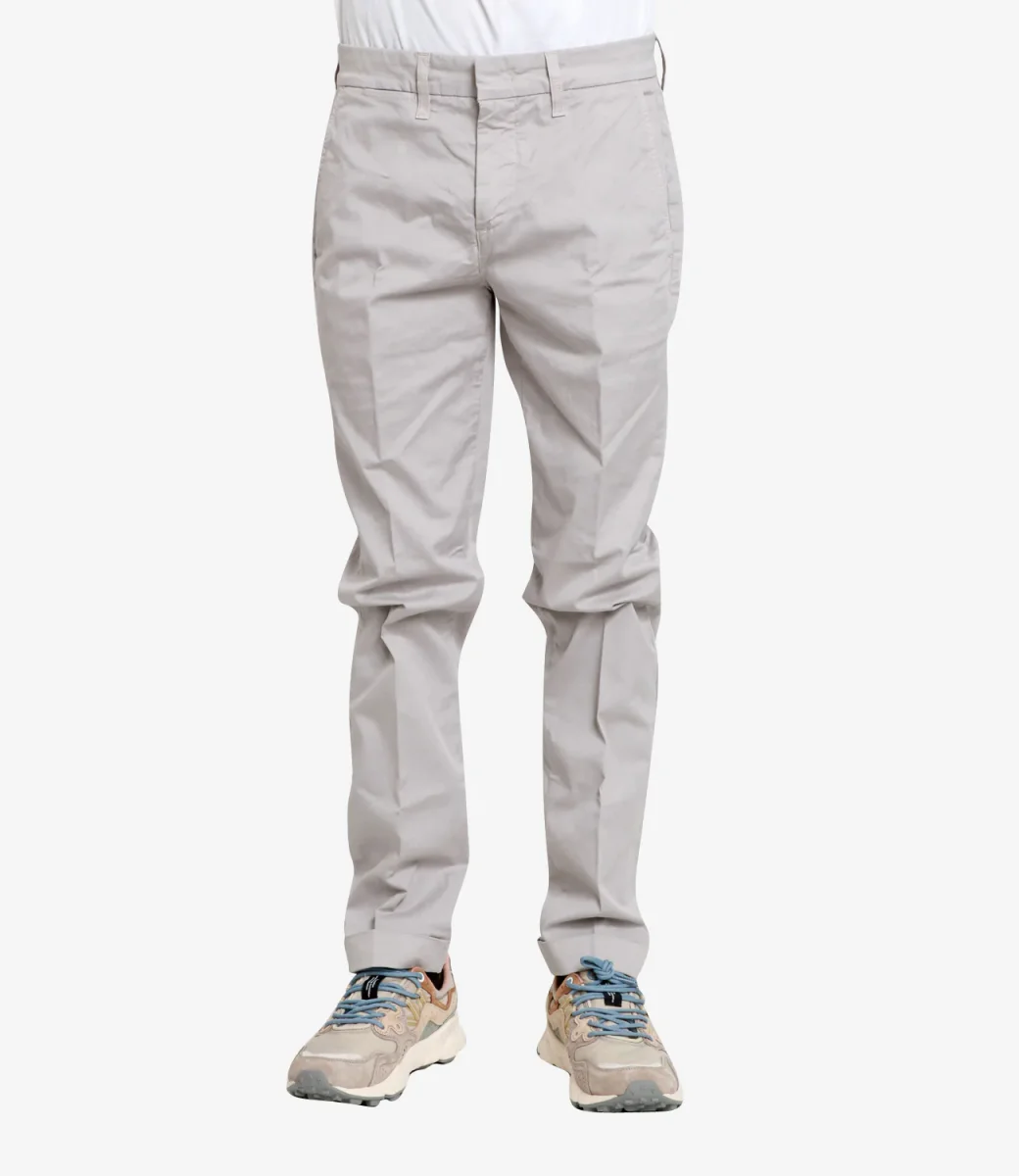 Pantalone Fay realizzato in gabardine di cotone stretch tinto in capo, modello dal taglio classico con piega stirata sulla lunghezza e risvolto al fondo, etichetta patch personalizzata Fay sul retro.