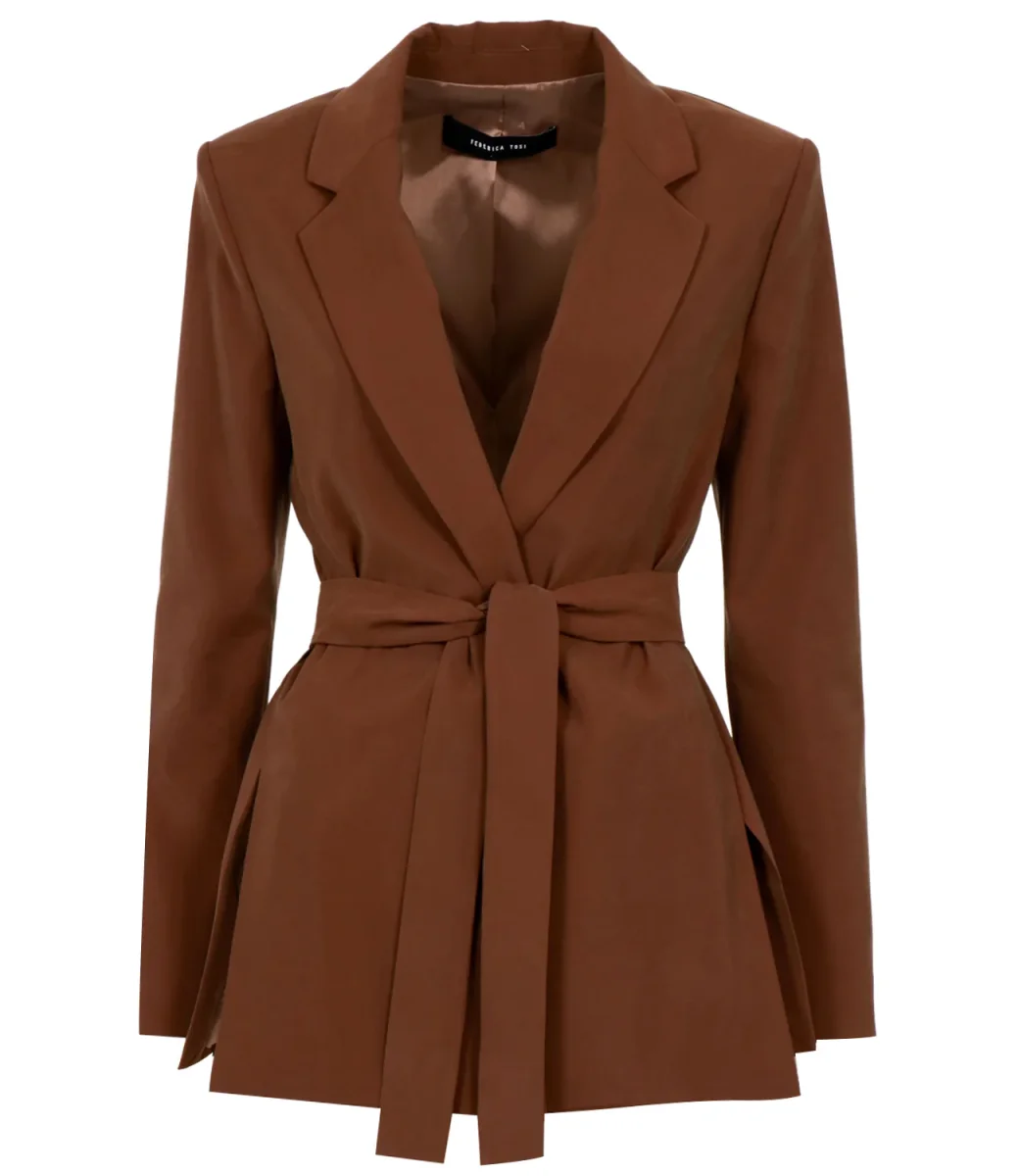 Giacca Federica Tosi in tessuto cady a trama compatta. Silhouette diritta e morbida, scollo revers con cintura in vita in tessuto e tono per una migliore vestibilità; spacchi sui laterali al fondo.