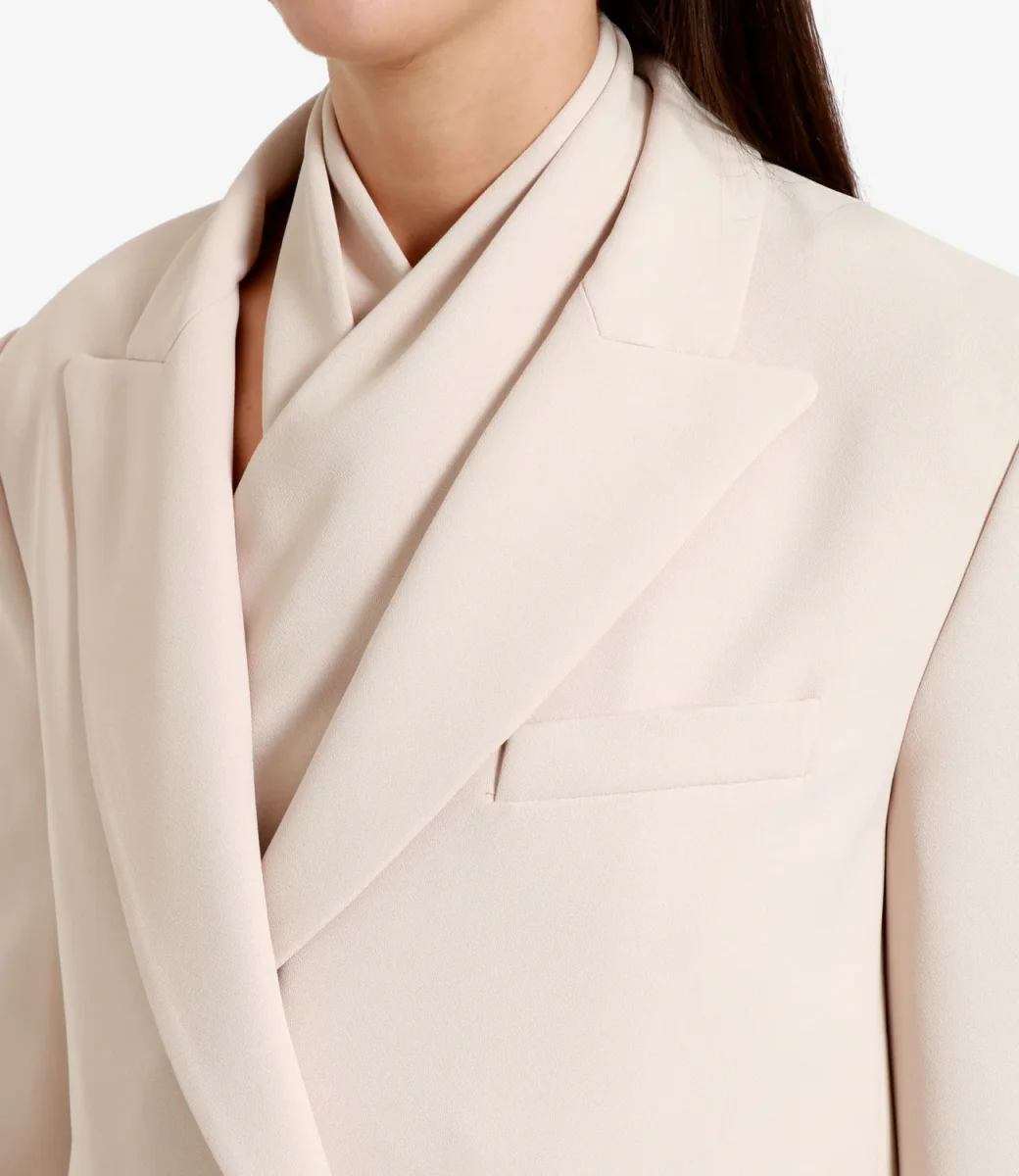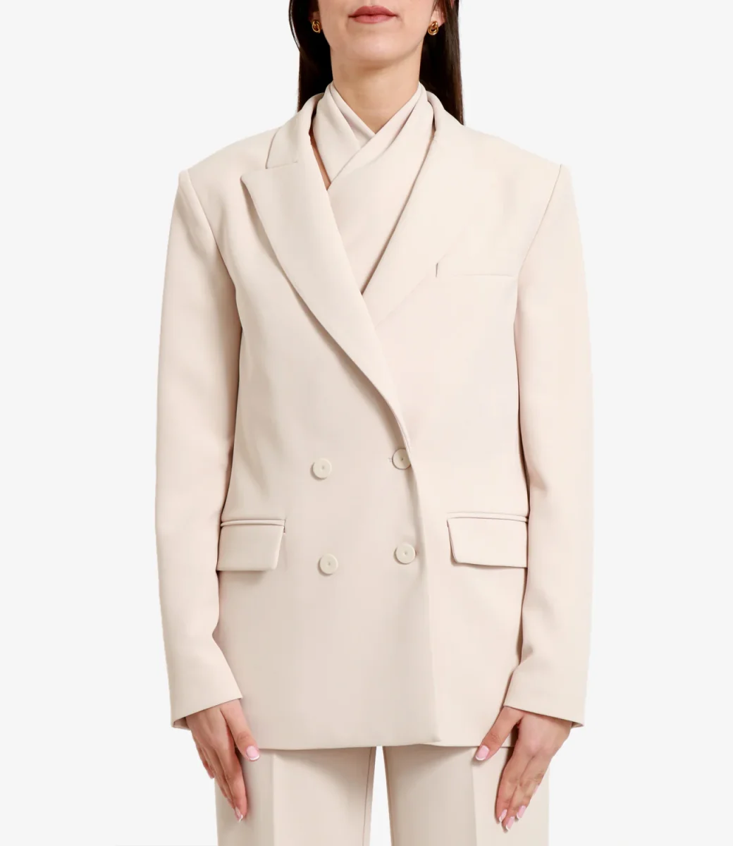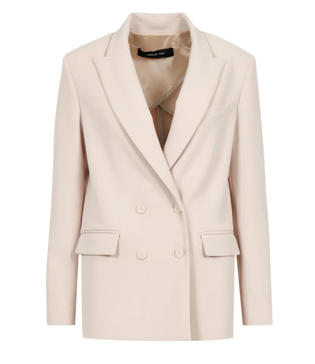 Giacca Federica Tosi in tessuto cady a trama compatta, modello doppiopetto dal taglio sartoriale con collo revers classico, spalle definite e linea pulita. Versatile su look formali o rilassati.