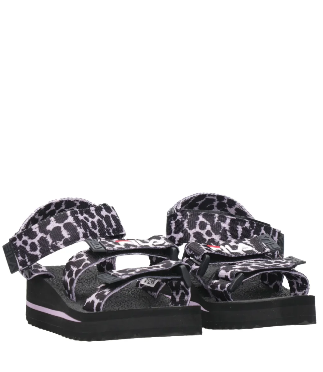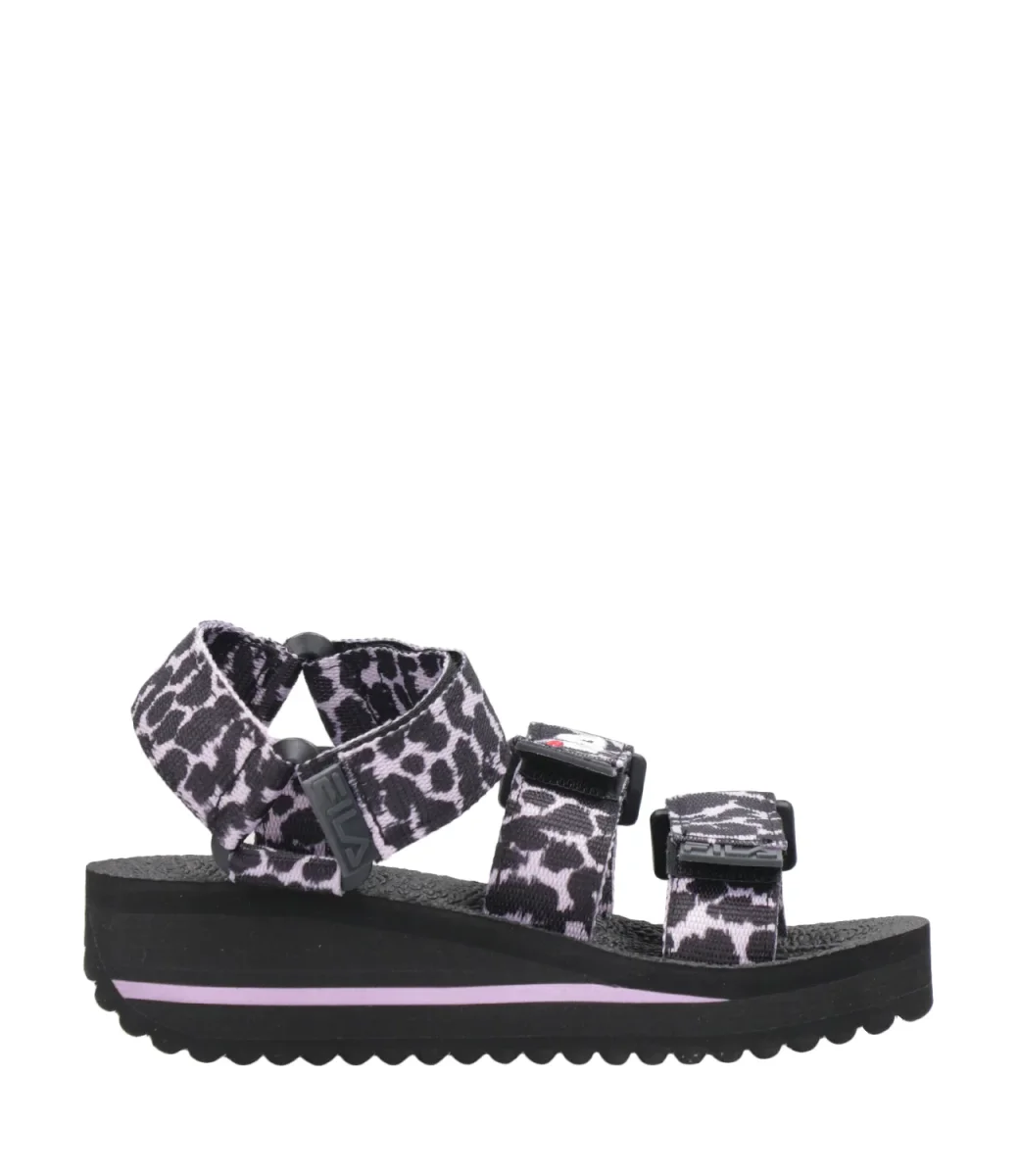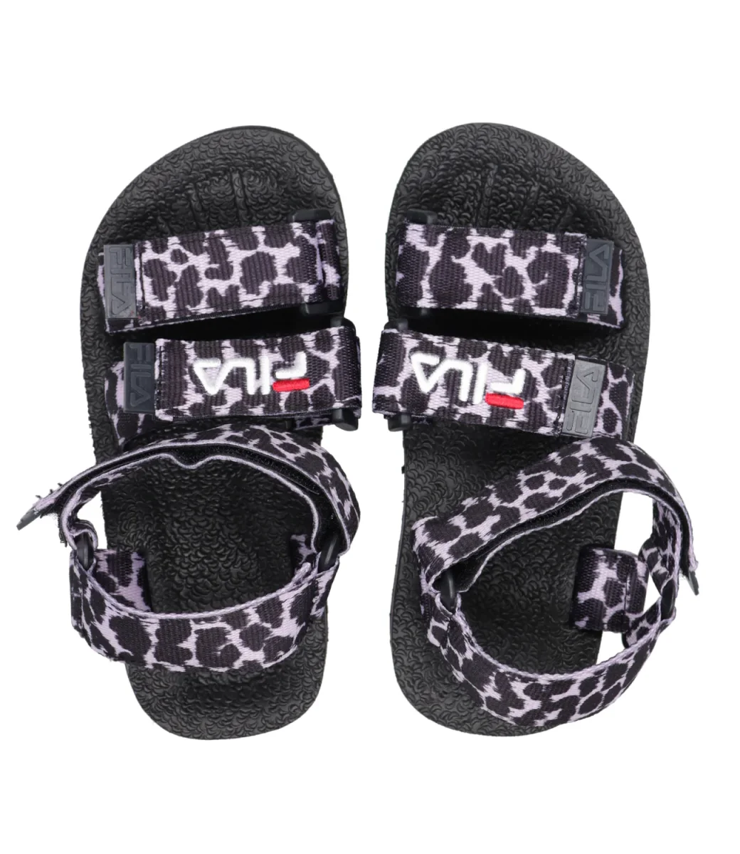 Sndalo Fila Kids in tessuto con chiusura a strappo e fantasia animalier.