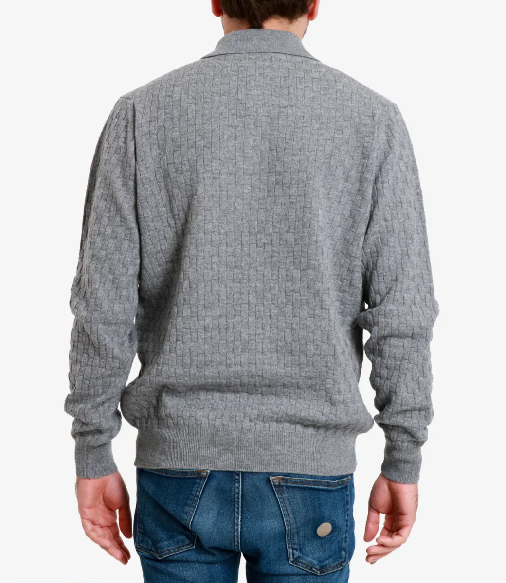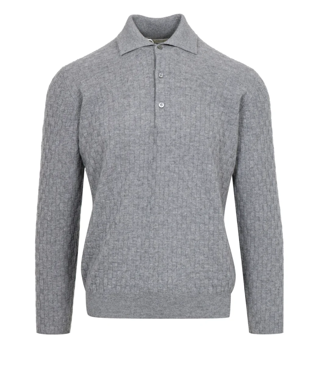 Polo Filippo De Laurentiis in lana e cachemire. Tessuto lavorato a maglia resistente e morbido, dalla texur sottile, decorato con lavorazione punto canestro.