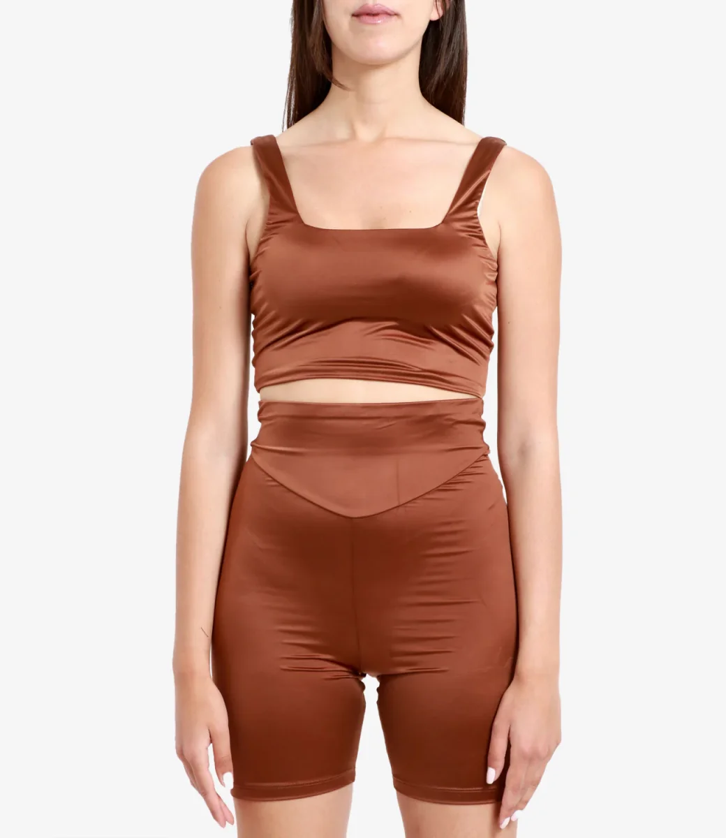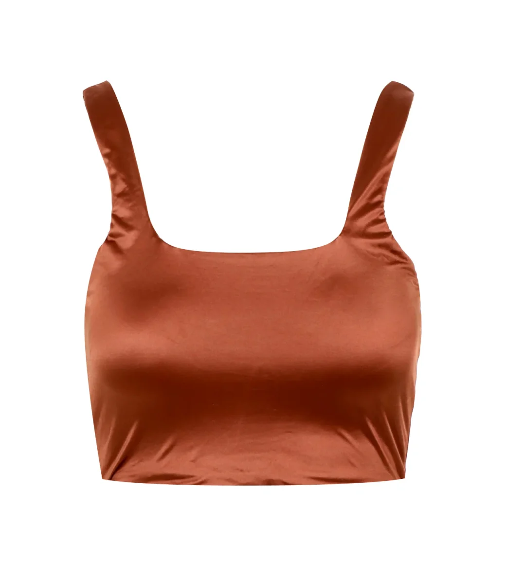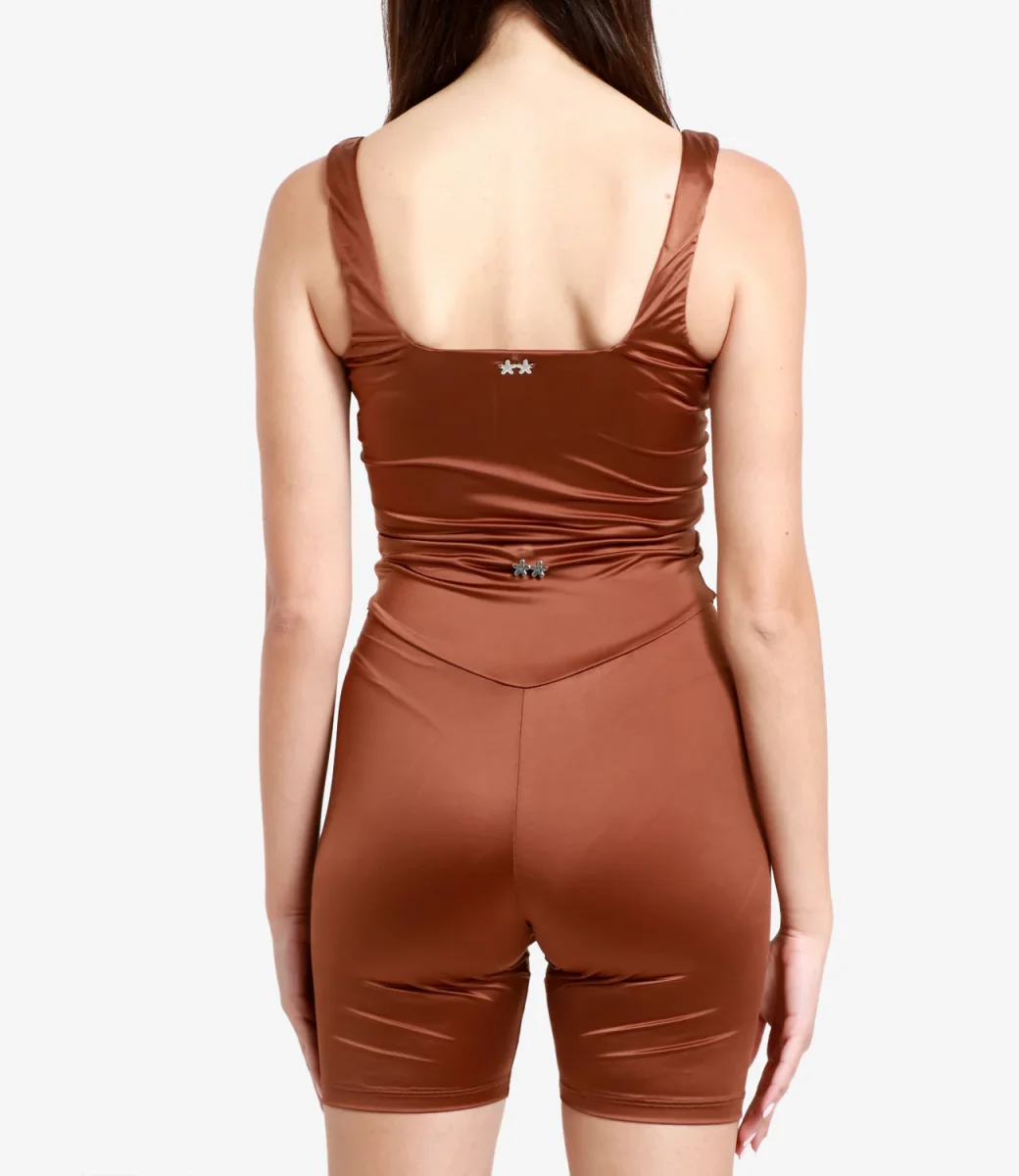 Top canotta F**K Project in tessuto lycra lucida senza imbottitura, con applicazioni argento sul retro .