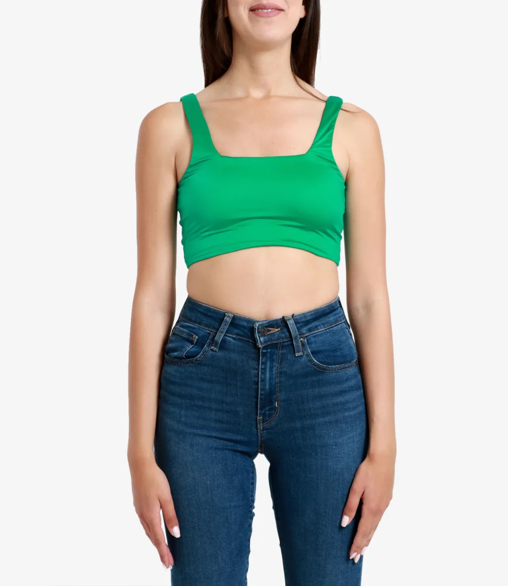 Top canotta F**K Project in tessuto lycra lucida senza imbottitura, con applicazioni argento sul retro .