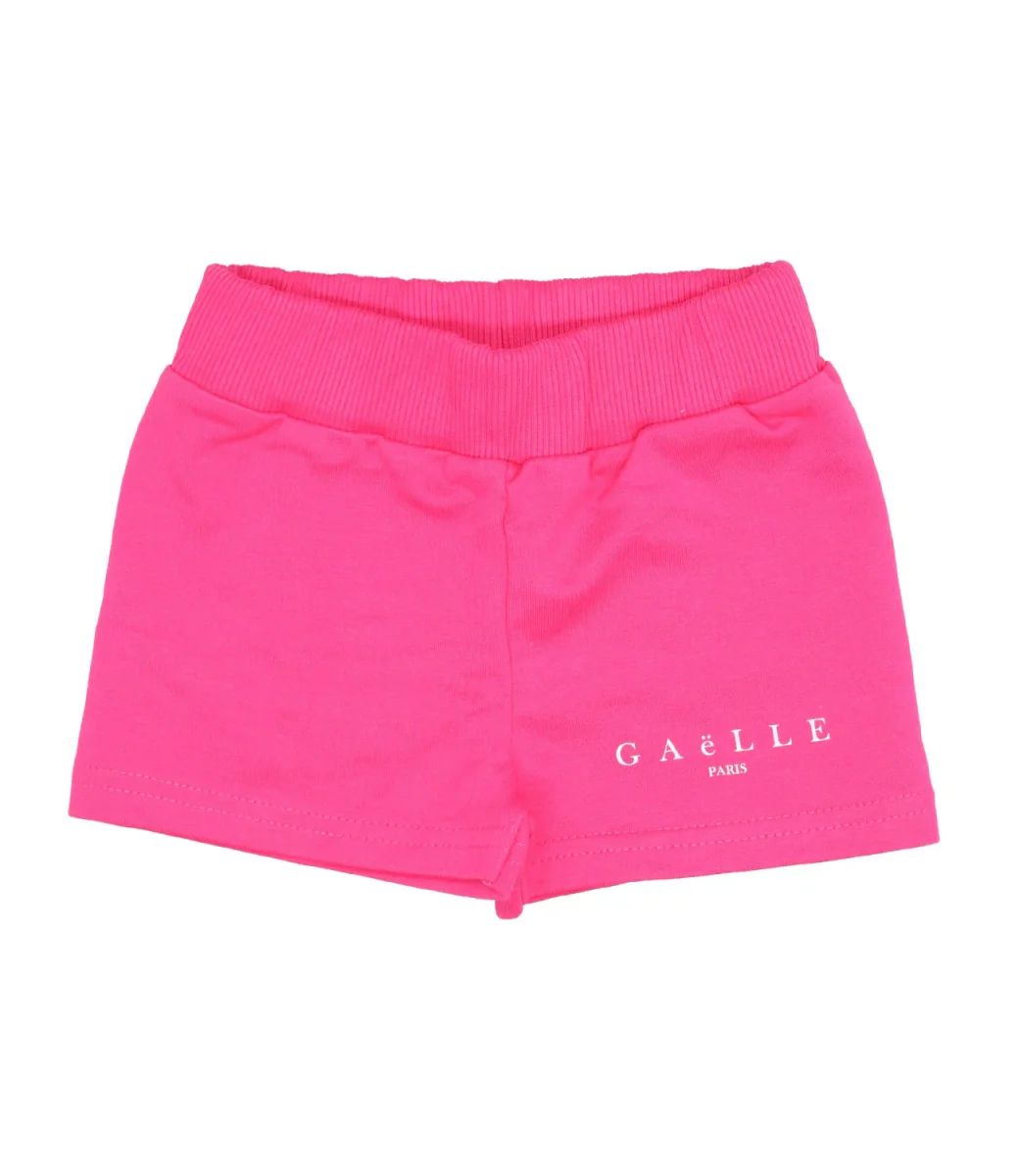 Shorts Gaelle Paris fuxia in cotone, vita elasticizzata, stampa frontale logo