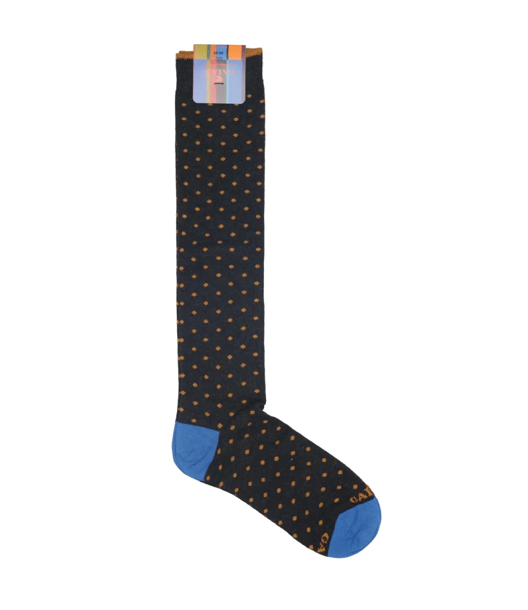 Calzini Gallo in fantasia a pois, realizzate in Italia in cotone, con tallone preformato, modello lungo.