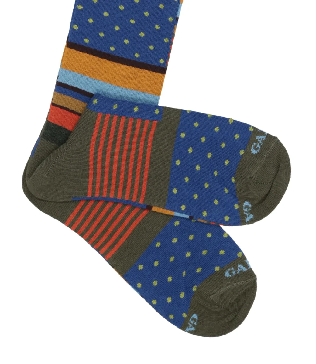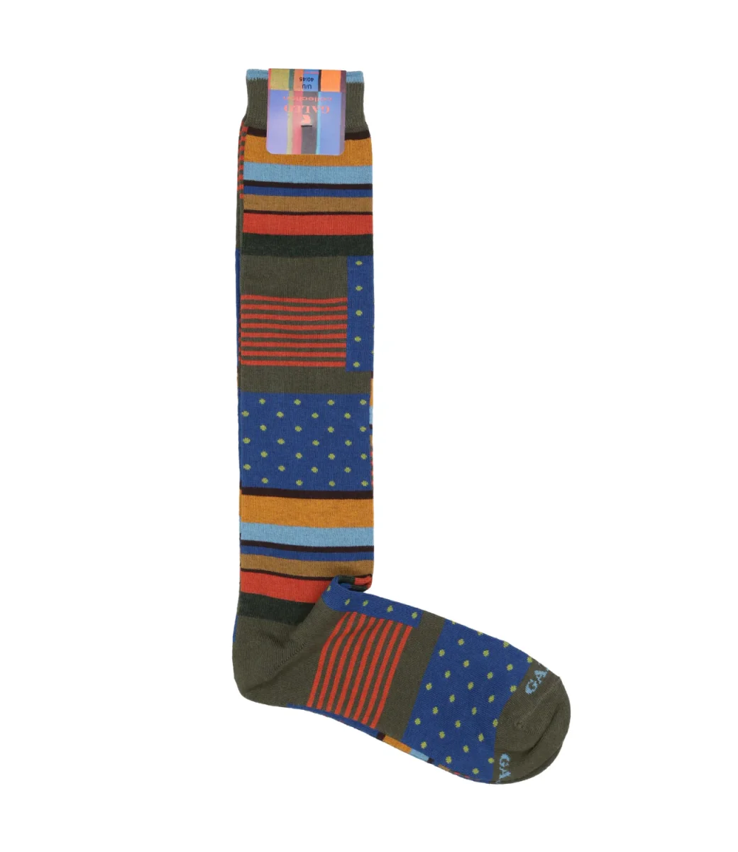 Calzini Gallo modello lungo realizzate in Italia in morbido cotone. Fantasia a blocchi. Gallo. Sinonimo di qualità ed eccellenza dal 1927.
