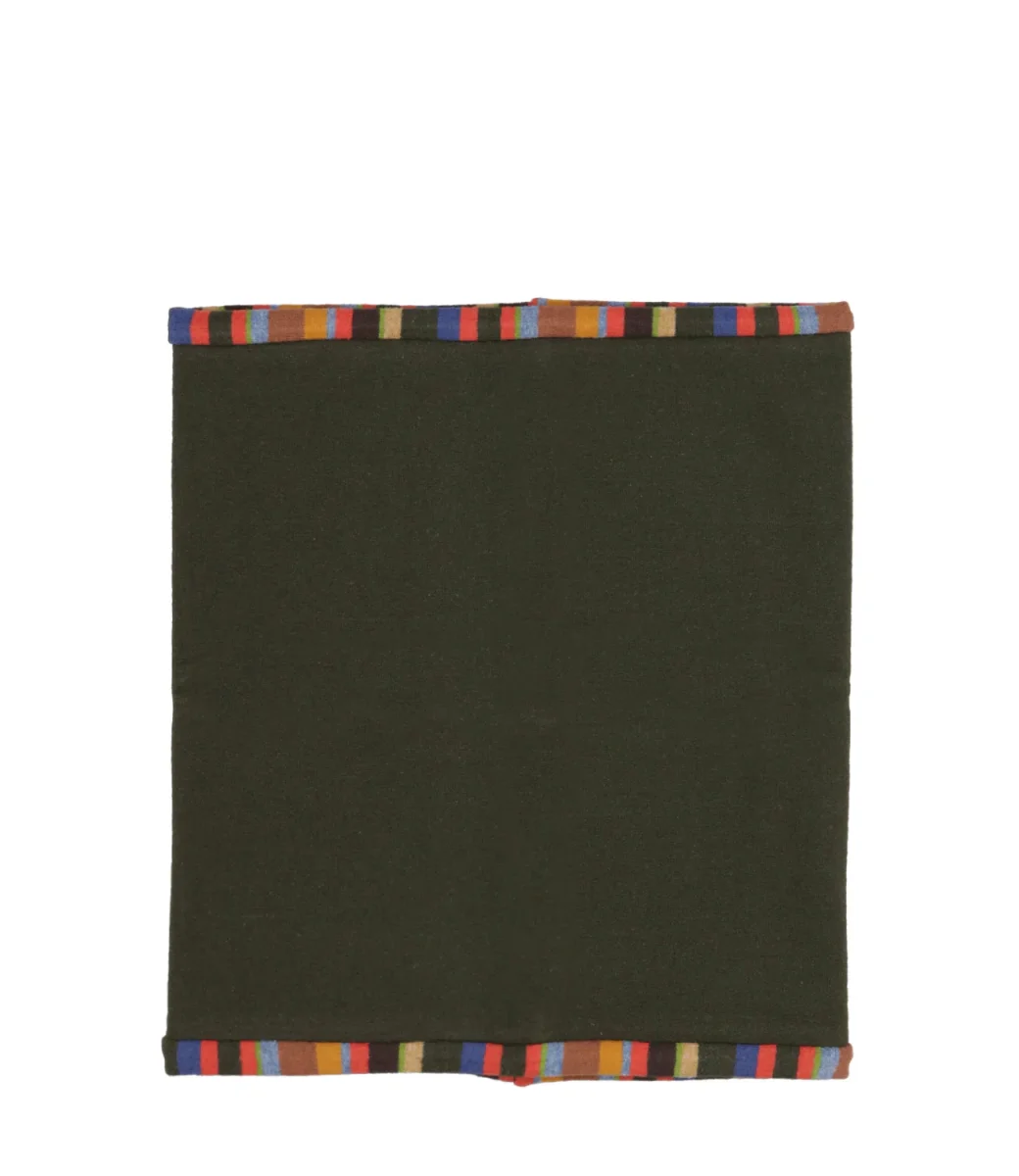 Collo Gallo realizzato in Italia in morbido pile. Reversibile un lato a tinta unita e l’altro righe multicolor.