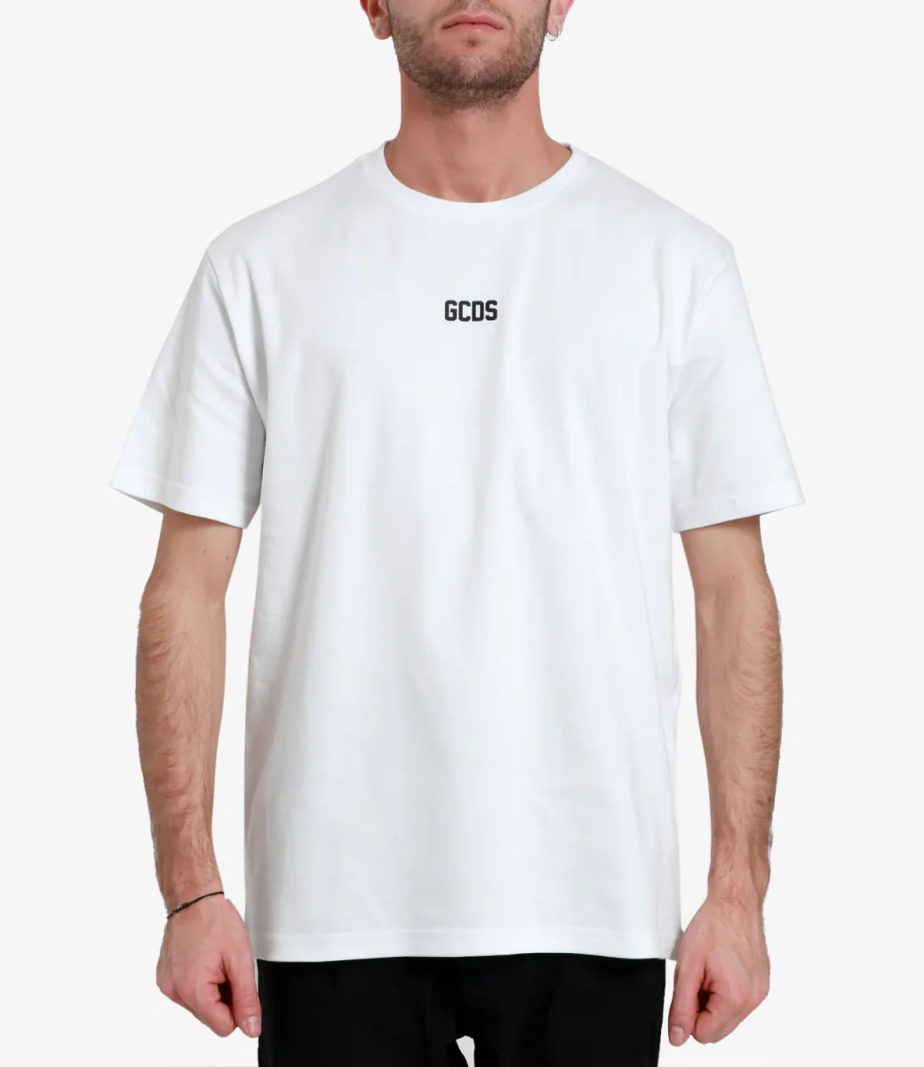 T-Shirt GCDS modello Eco Logo in cotone, modello con girocollo, maniche corte e logo stampato sul petto.