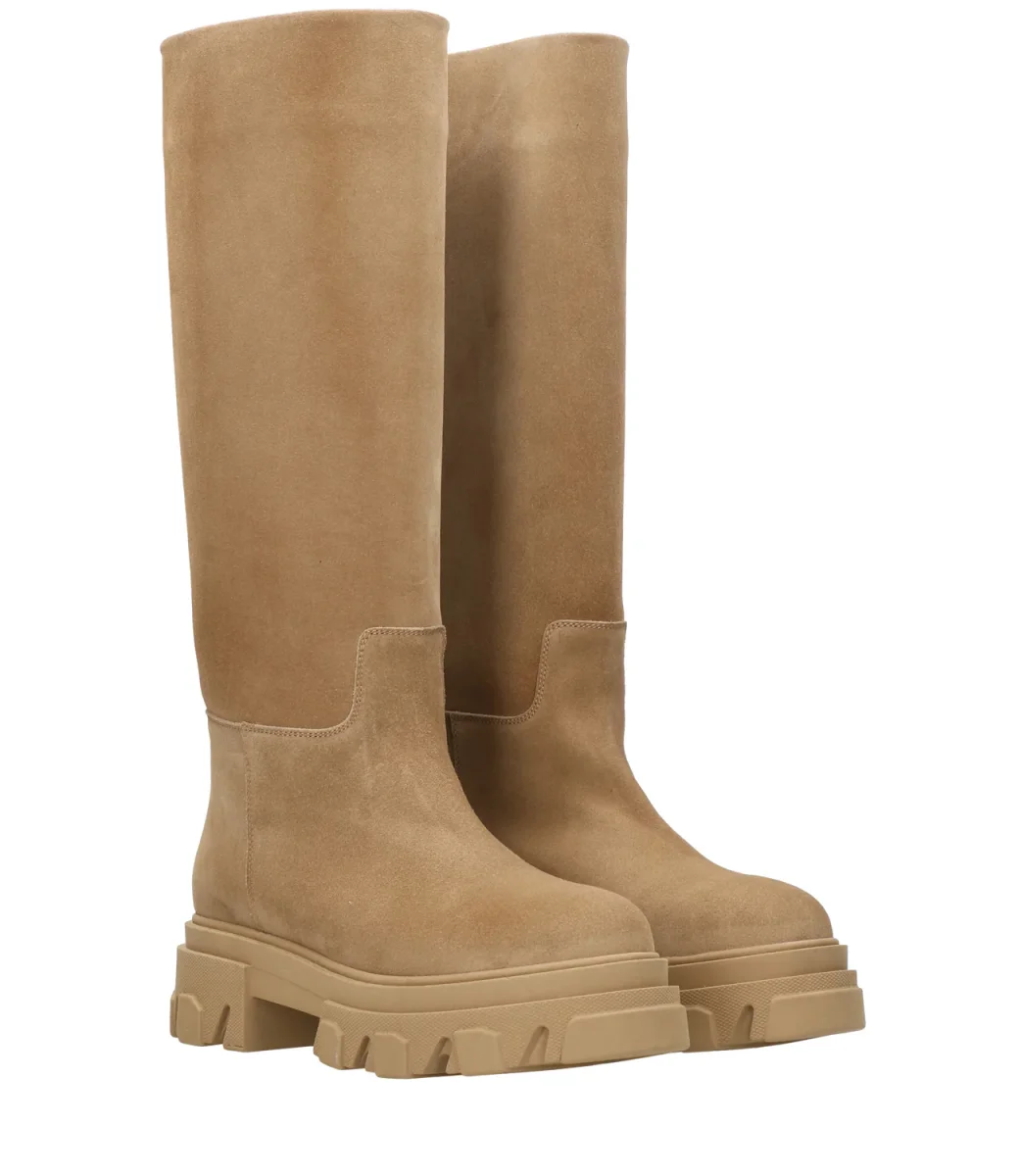 Stivale ‘Perni 07’ Gia Borghini x Pernille Teisbaek modello combat boot tubular in pelle liscia, con suola carroarmato tono su tono.