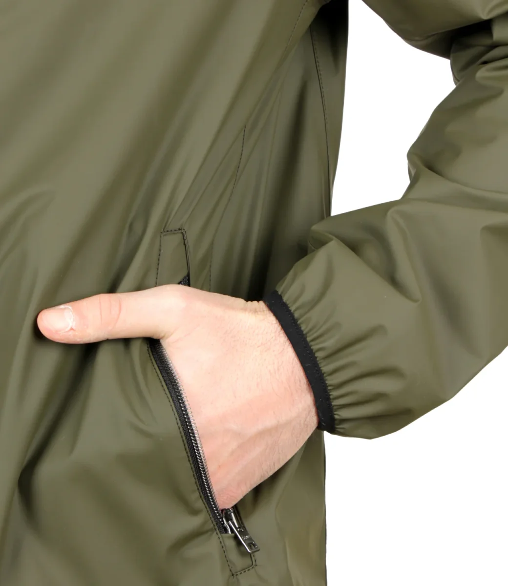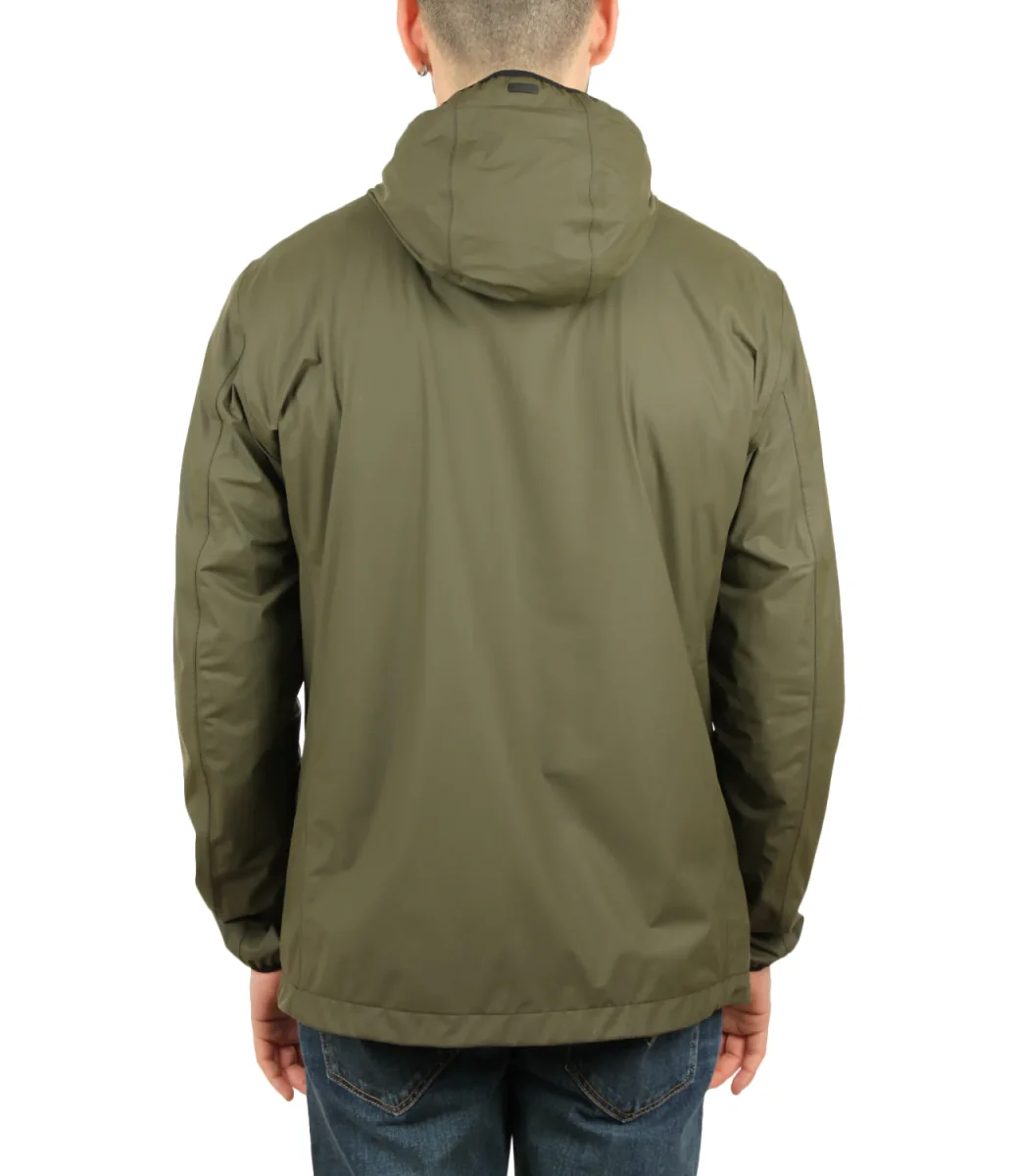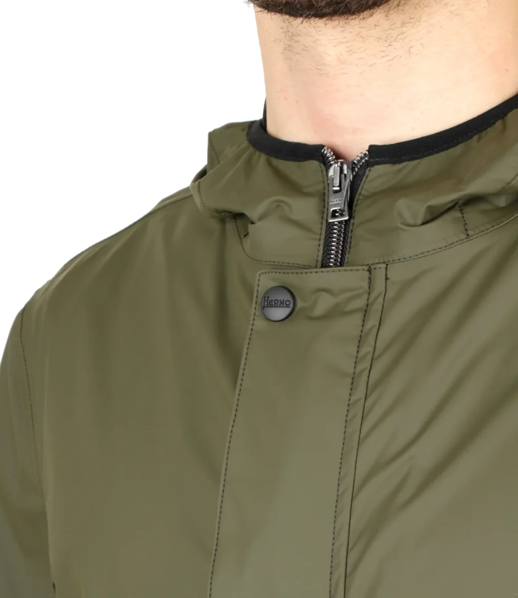 Giacca in tessuto stretch dall’effetto gommato. Le linee decise e il tessuto altamente performante conferiscono al capo uno stile essenziale e garantiscono il massimo confort ed estrema libertà nei movimenti. Si avvale della tecnologia Herno Air-Tech Transpiration Project, un esclusivo tessuto stretch traspirante e dotato di membrana esterna gommata che ne garantisce l’impermeabilità. Completano la performance le termonastrature interne in argento
