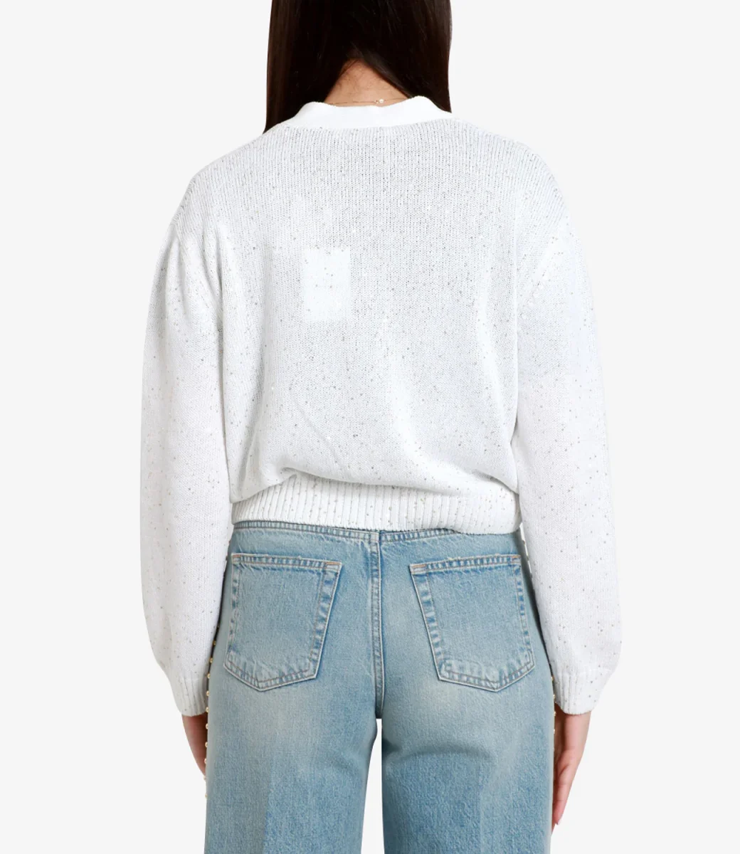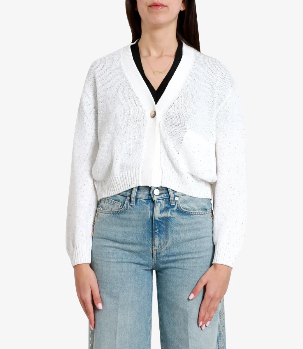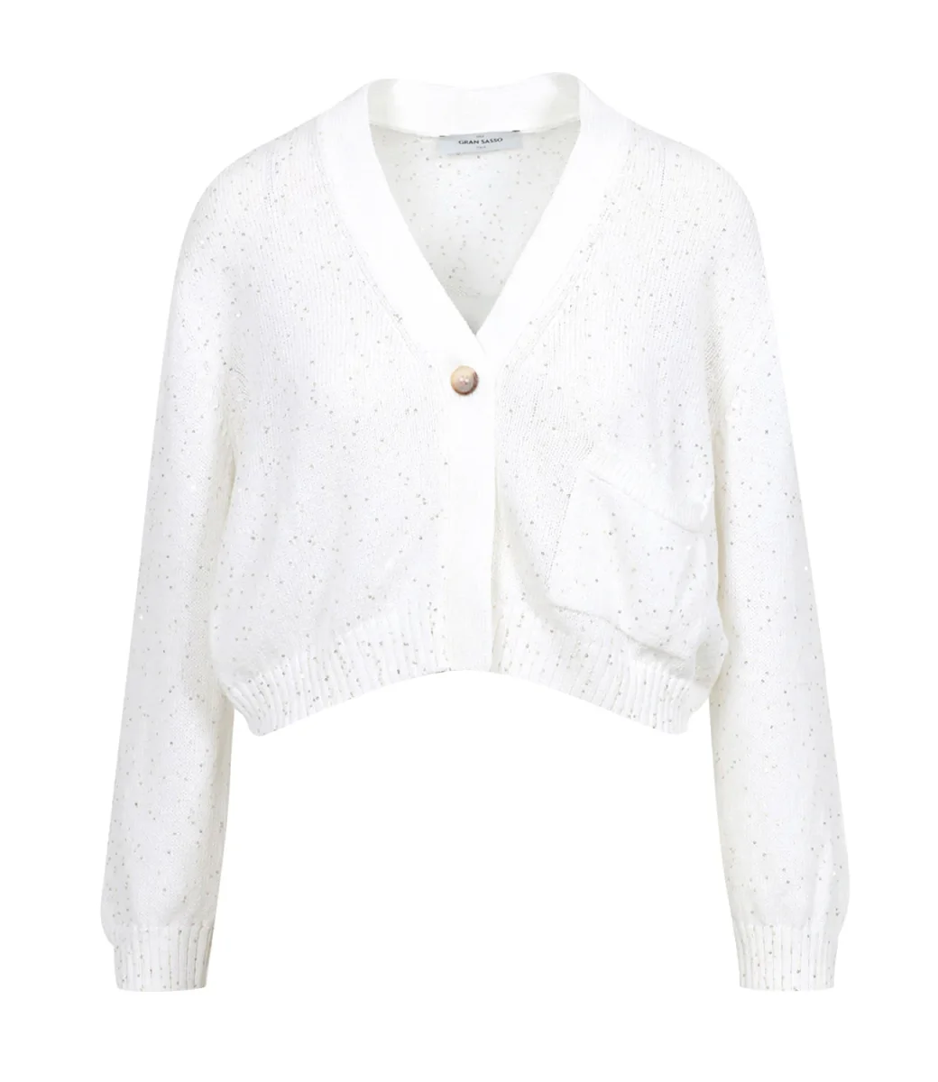 Cardigan Gran Sasso in cotone rasato lavorato a maglia, con micro pailettes all over, Silhouette morbida. Eleganza e stile per ogni momento.