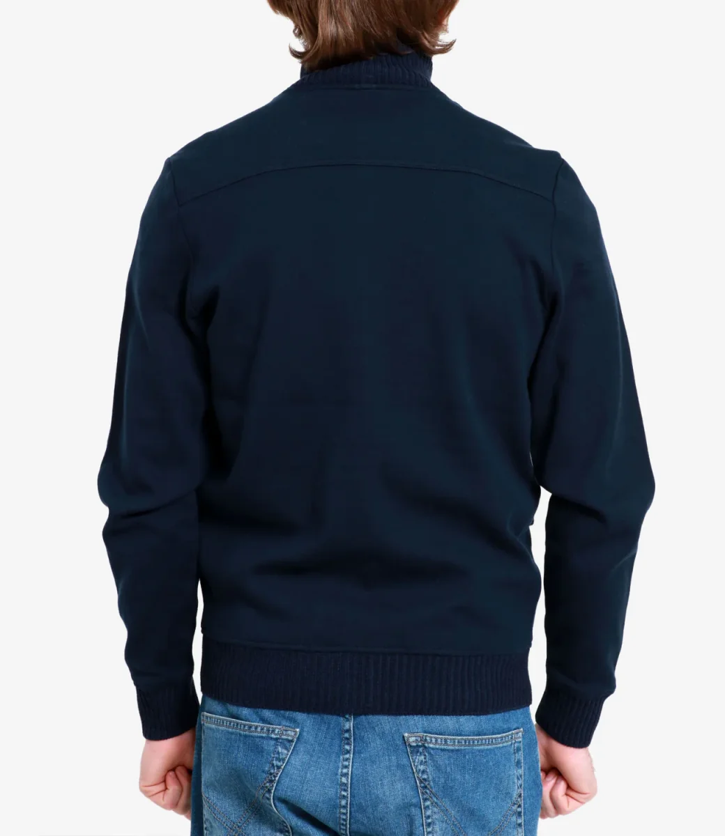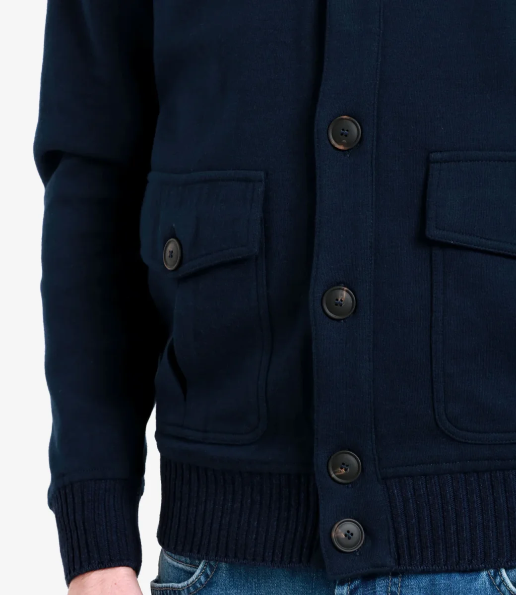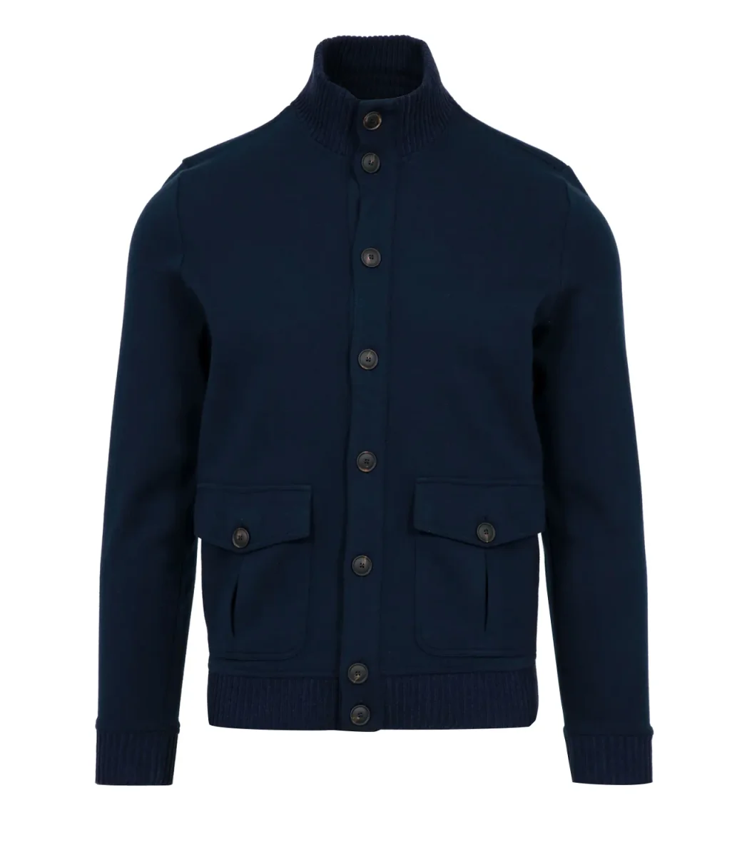 Cardigan Gran Sasso realizzato in cotone, con collo alto,chiusura con bottoni, tasche con bottoni e patta applicate sul davanti, finiture a coste inglesi.