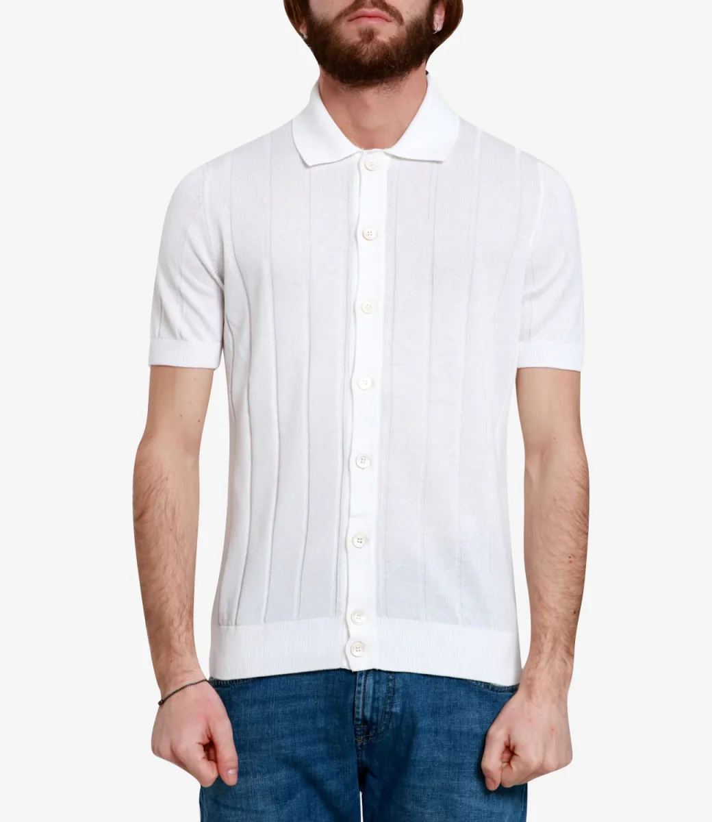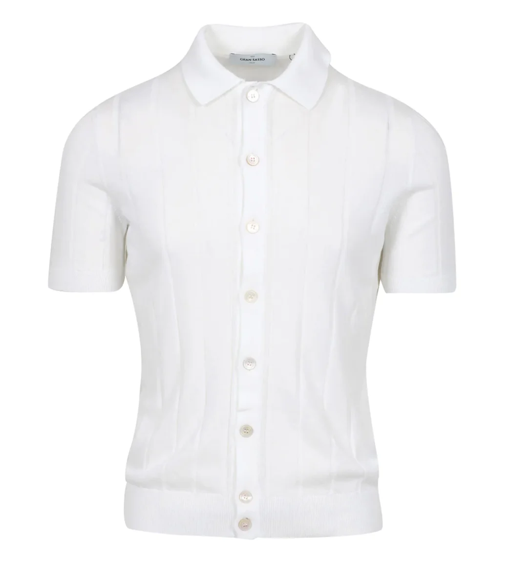 Polo Gran Sasso in Fresh Cotton. Modello con maniche corte, colletto classico a costine e chiusura frontale intera. Stile dalla ricercata eleganza dedicata a chi possiede la giusta personalità per indossare outfit che si lasciano notare.