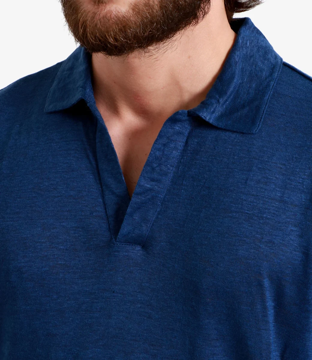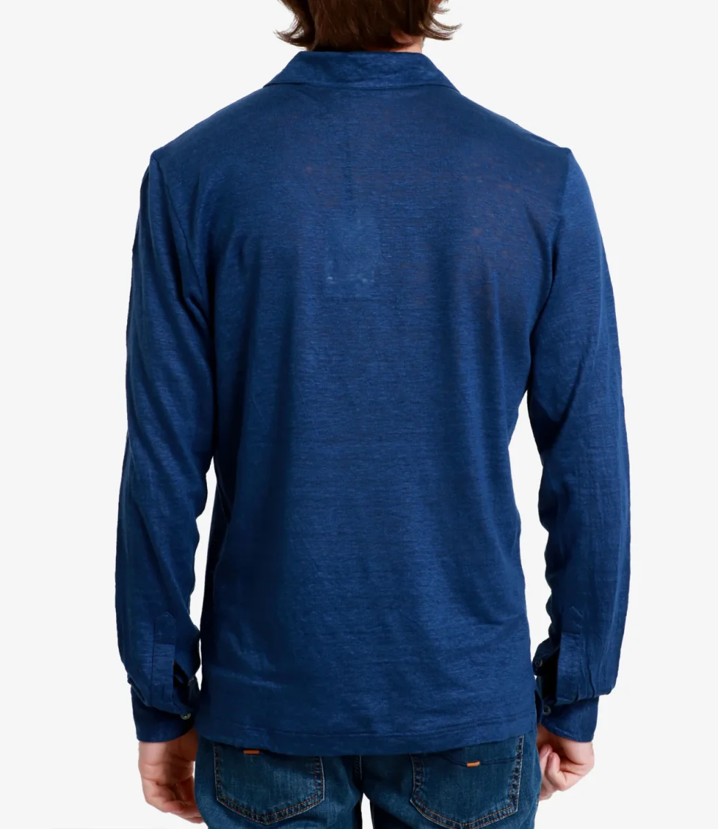 Polo Gran Sasso realizzata con filo in lino. Modello con maniche lunghe, colletto classico, scollo a V. Ricercata eleganza per outfit classici dai tessuti e lavorazioni che si distinguono.