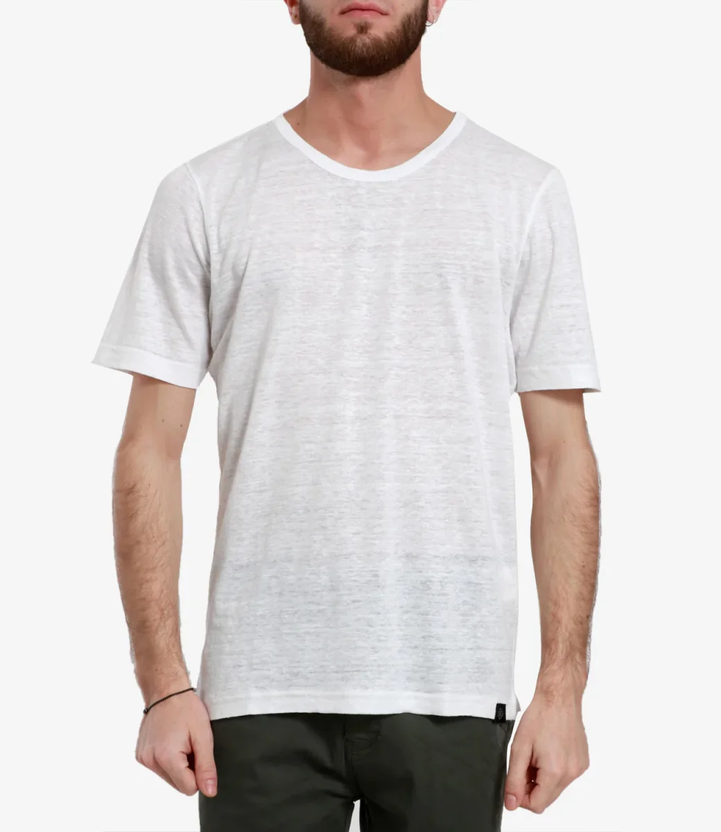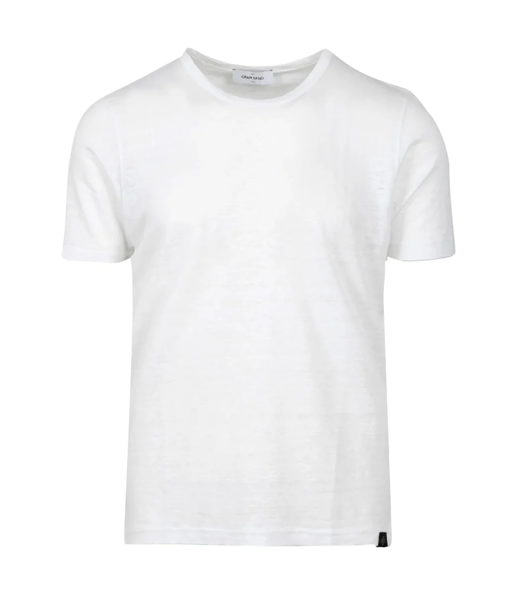 T-Shirt Gran Sasso in cotone a girocollo e maniche corte. Il modello è alto 1.75m ed indossa una 44.