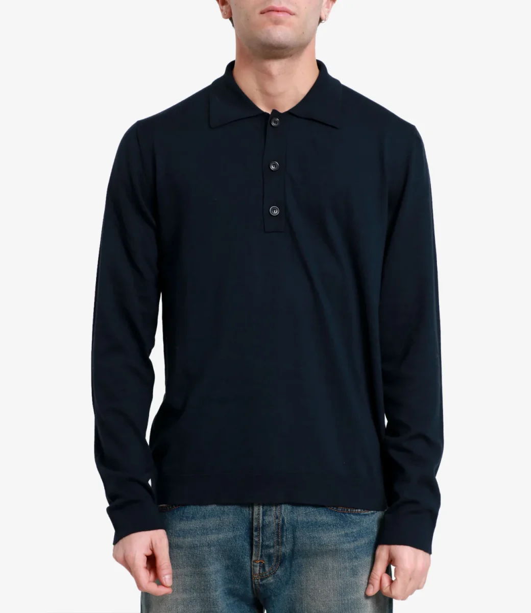 Polo Grifoni in misto lana e cotone dal finish al tatto di un tessuto ultra morbido dalla texure rasata, silhouette morbida.