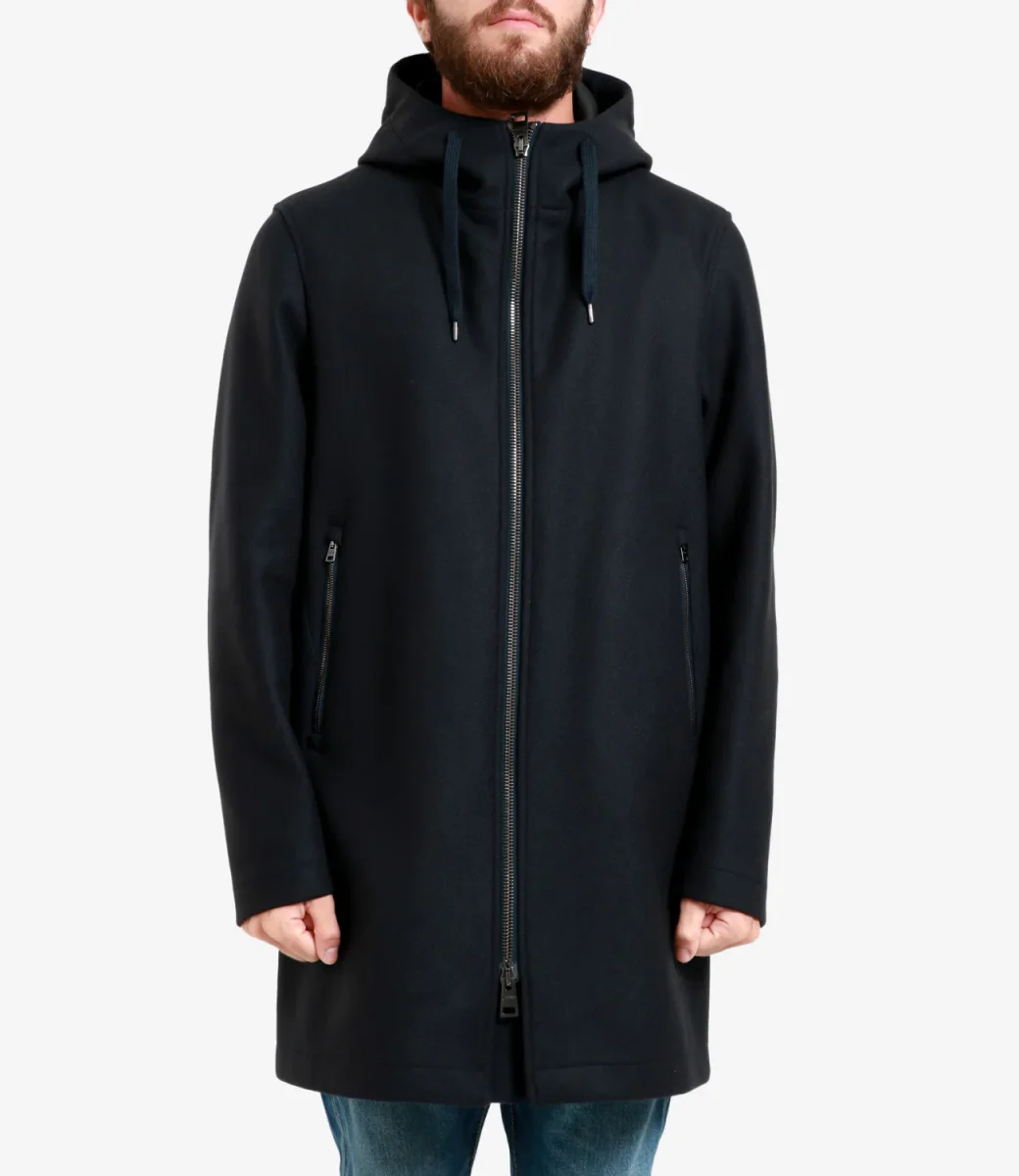 Giubbotto Herno in tessuto misto lana e poliammide, con cappuccio e coulisse, chiusura frontale con zip a doppio cursore logato, due tasche oblique sul davanti con zip e cursore logato, una tasca interna, con maniche lunghe senza polsino, fondo dritto. Made in Italy