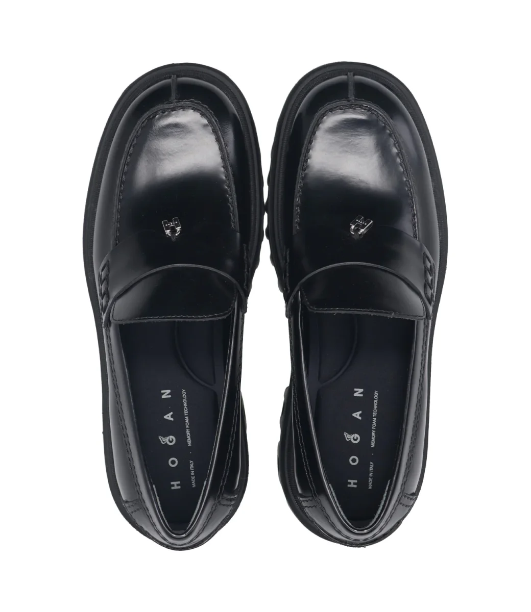 Mocassino Hogan H700 realizzati in pelle dalla silhouette urban chic. Creato con design chunky, che fonde il maxi monogramma H nell’iconica suola H-Stripes.