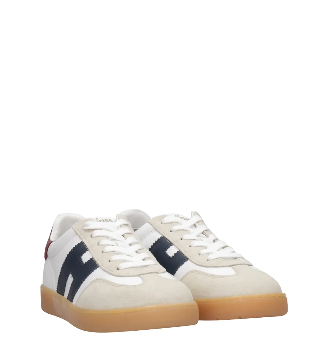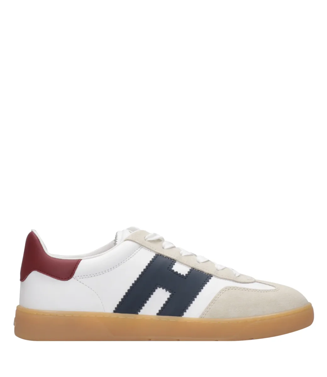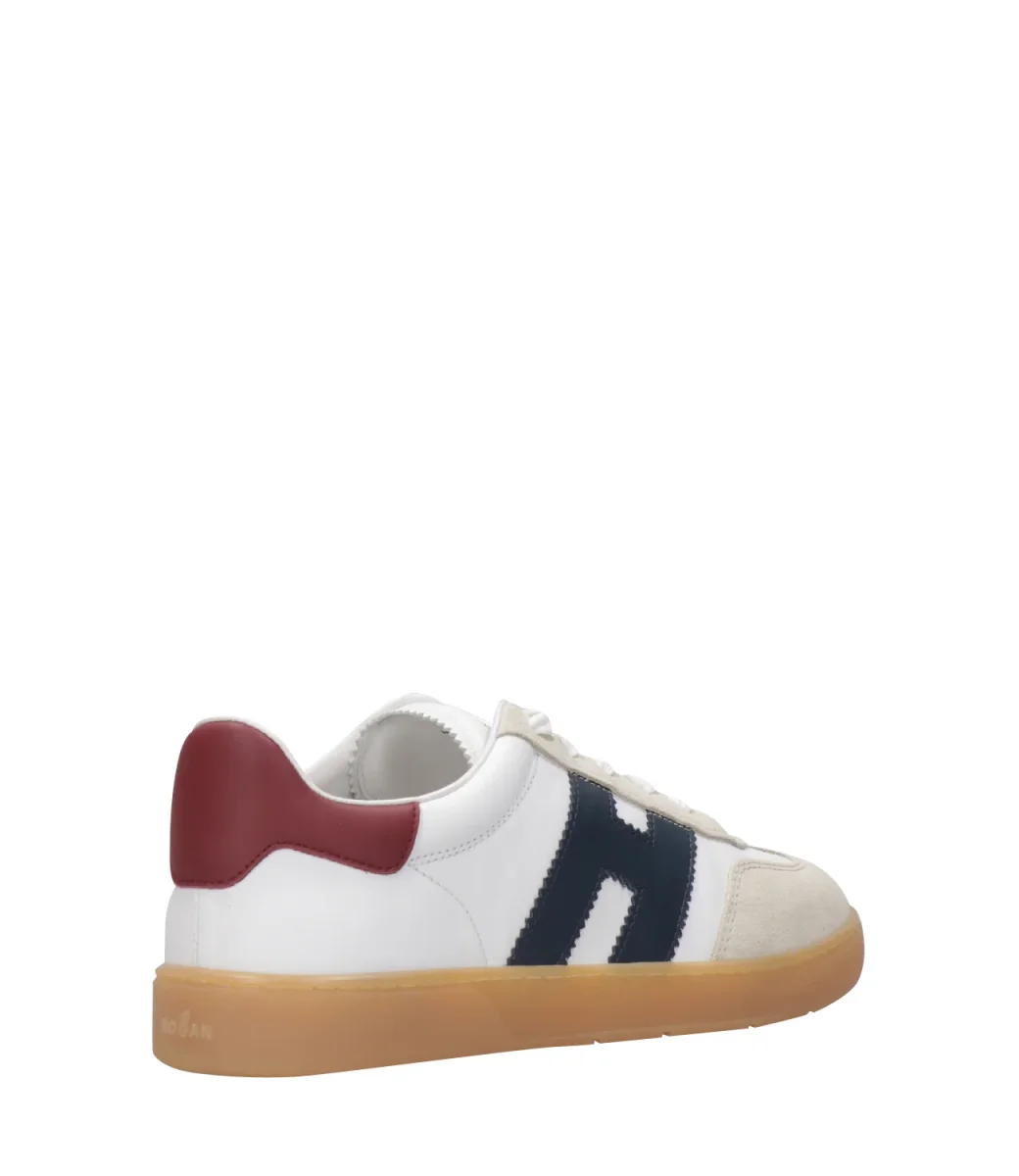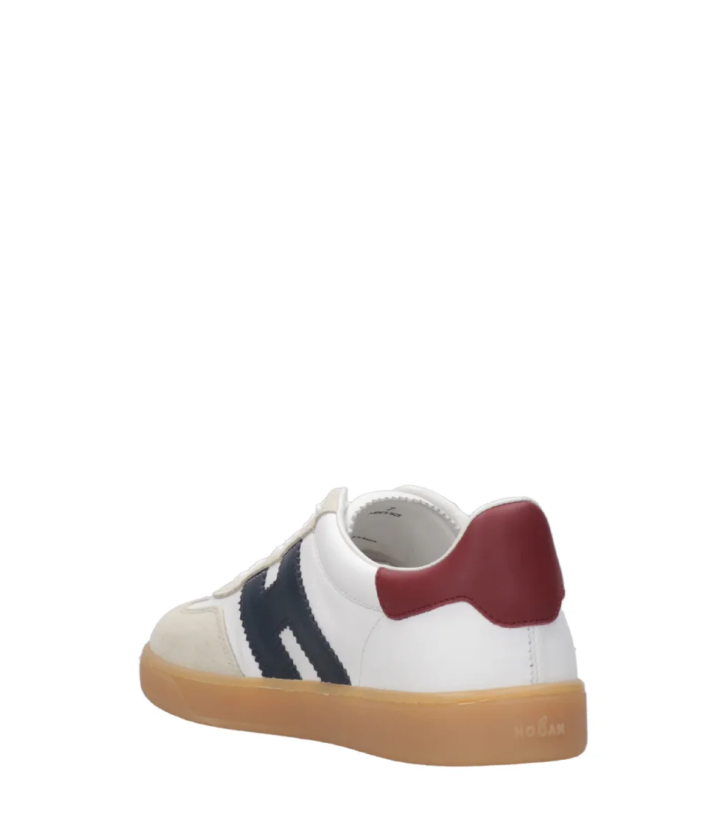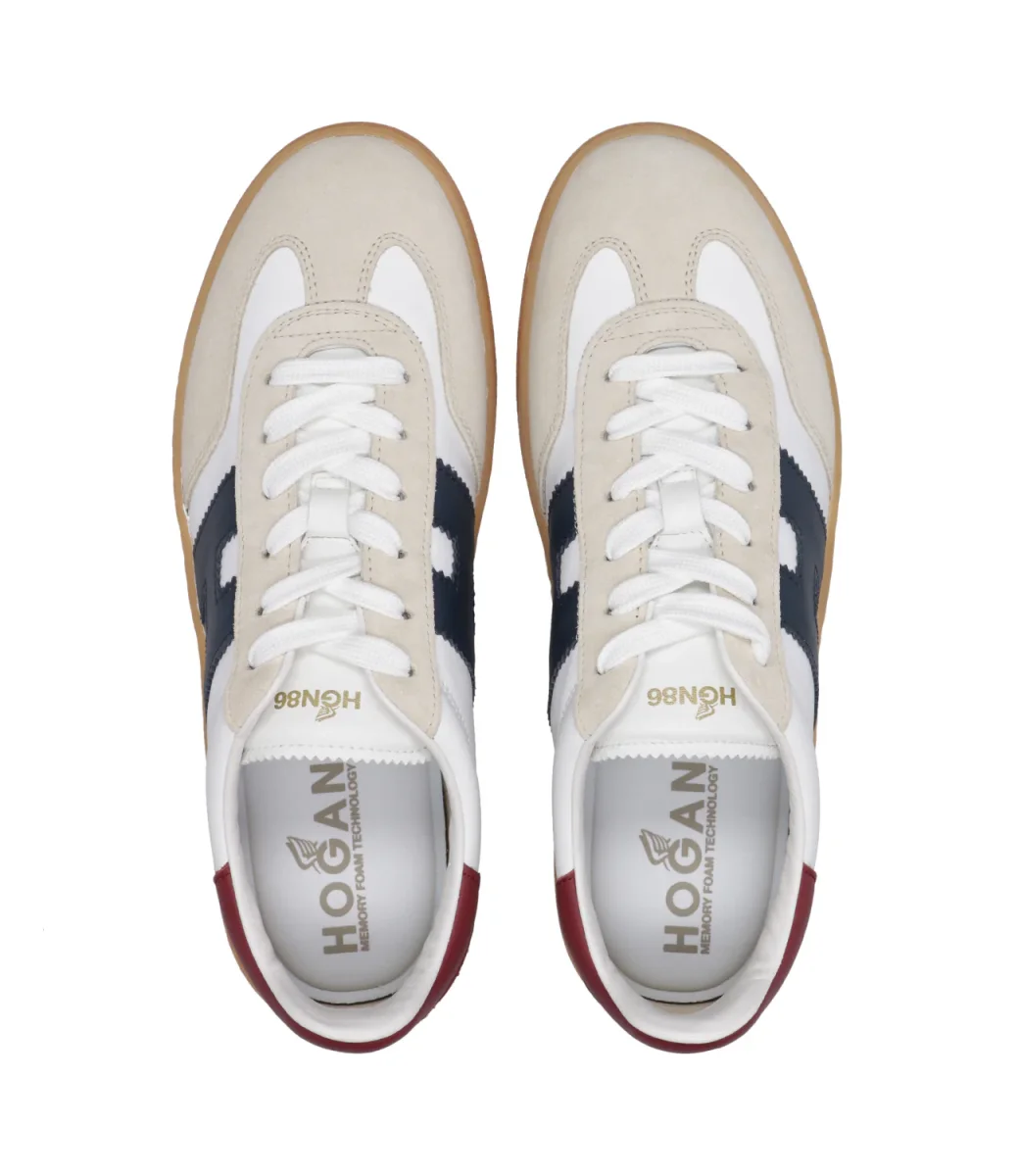 Sneakers Hogan in pelle liscia con logo laterale e dettagli in pelle scamosciata e nappa, fussbett in memory foam 5mm e altezza totale 3.2cm.