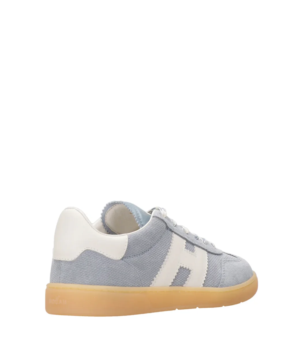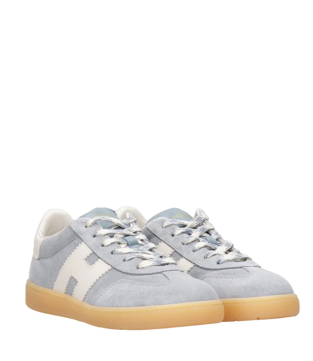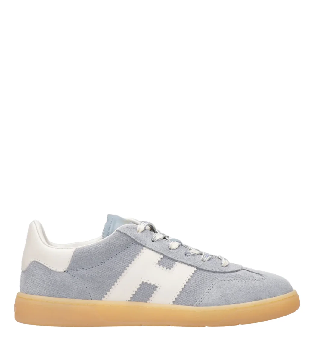 Sneakers Hogan Cool in pelle scamosciata e dettagli in pelle liscia, iconica H in nappa sul laterale con finish dentellato al bordo, fussbett in memory foam, chiusura con lacci.
