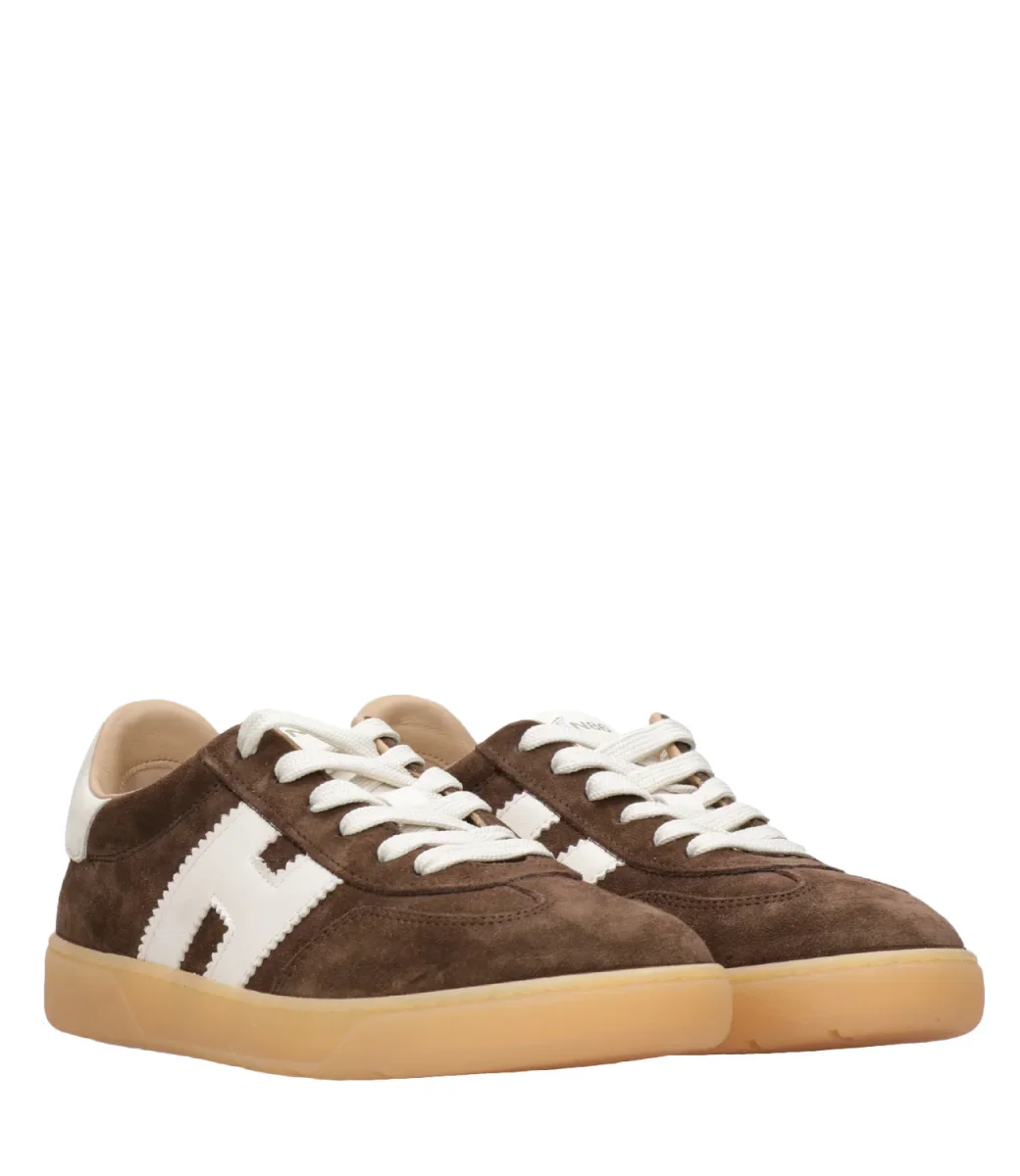 Sneakers Hogan Cool in pelle scamosciata e dettagli in pelle liscia, iconica H sul laterale con finish dentellato al bordo, fussbett in memory foam, chiusura con lacci.