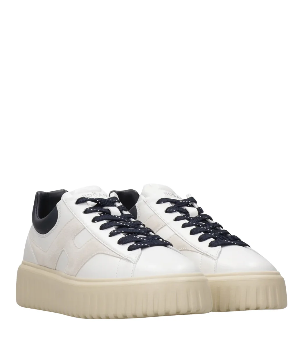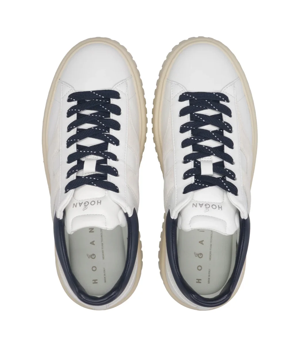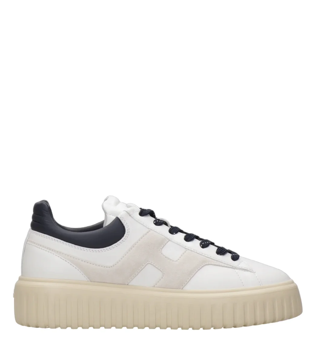 Sneakers Hogan H-Stripes con tomaia in nappa, H sul laterale che si estende su tutto il lato, chiusura con lacci, topponcino retro caviglia in pelle scamosciata, soletta in memory foam, suola scanalata.