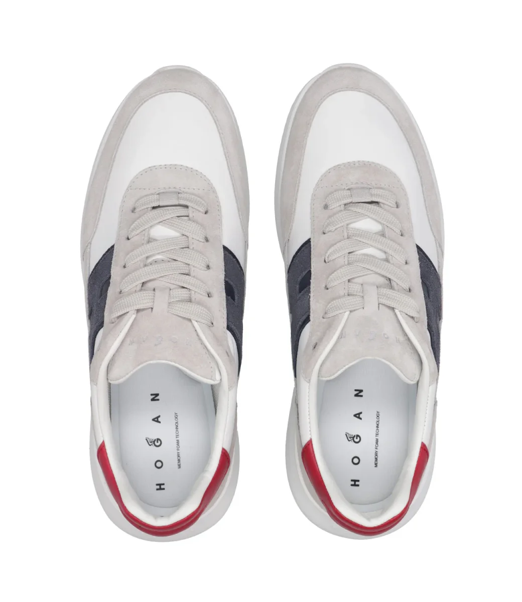 Sneakers Hogan Interactive³ in pelle scamosciata e tessuto tecnico, con H laterale. Un modello dal mood urbano, garantisce un massimo equilibrio tra comfort e stile.