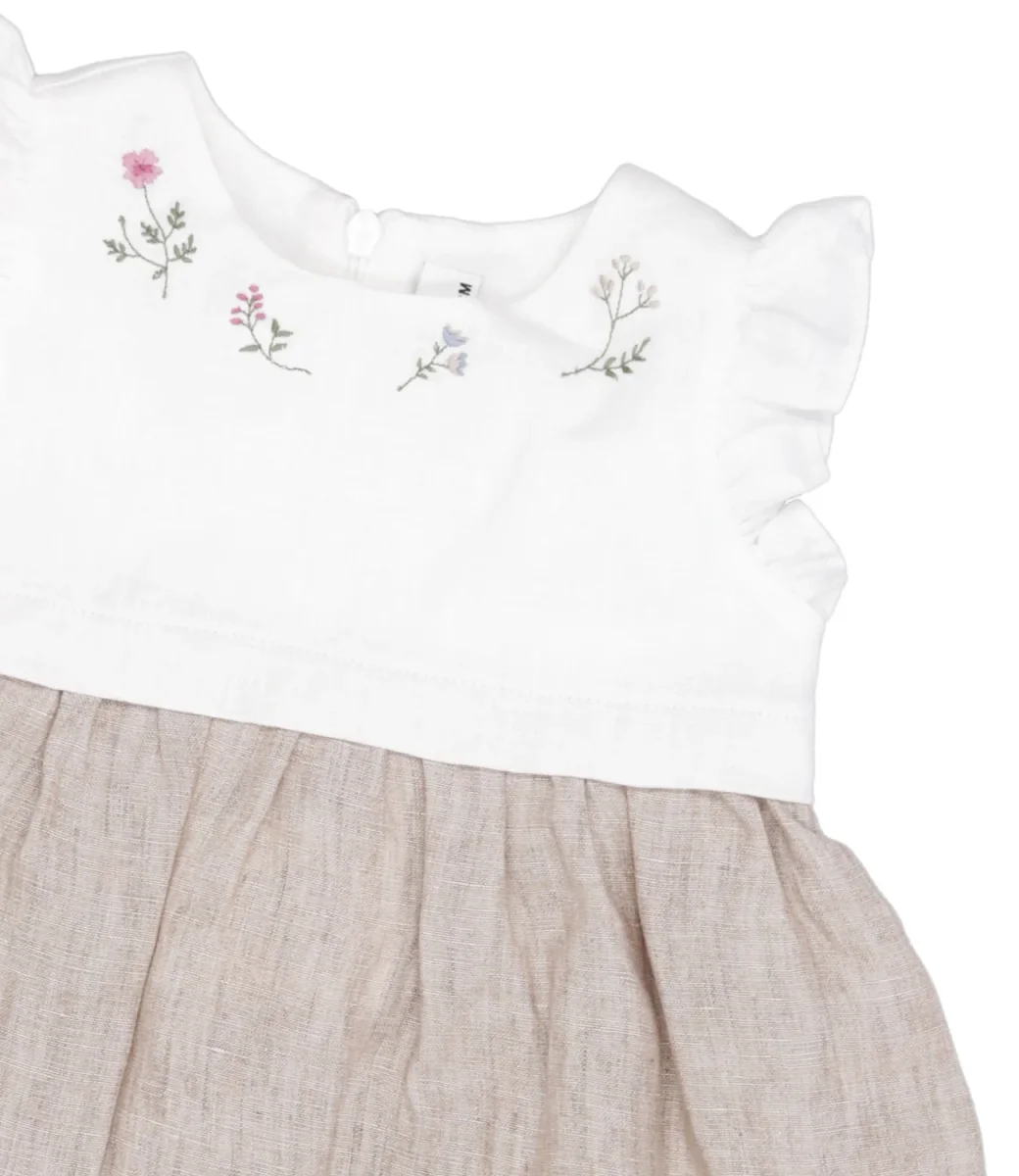 Abito Il Gufo in cotone con ricamo sul collo.