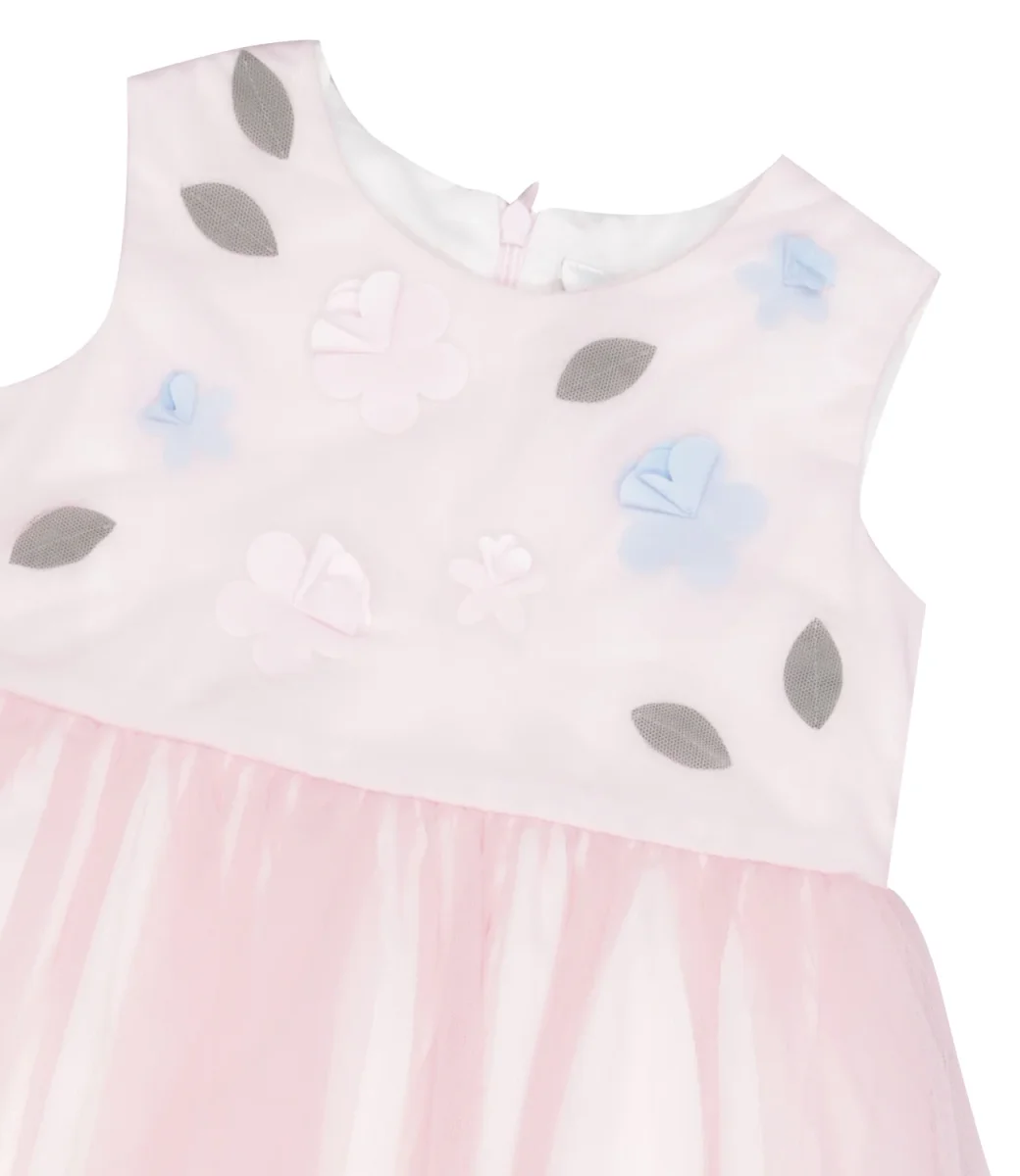 Dettagli:– Tulle– Girocollo– Smanicato– Fiori applicati– Chisura con zip
