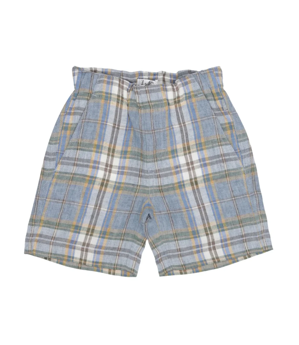 Bermuda Il Gufo a fantasia con vita elastica, tasche frontali e taschino posteriore.