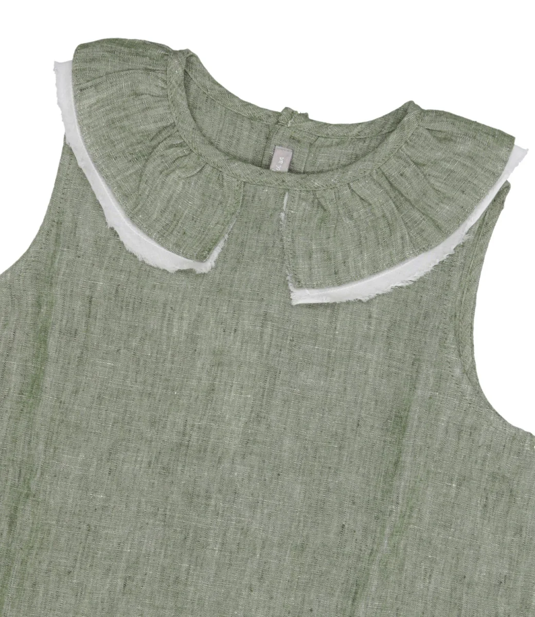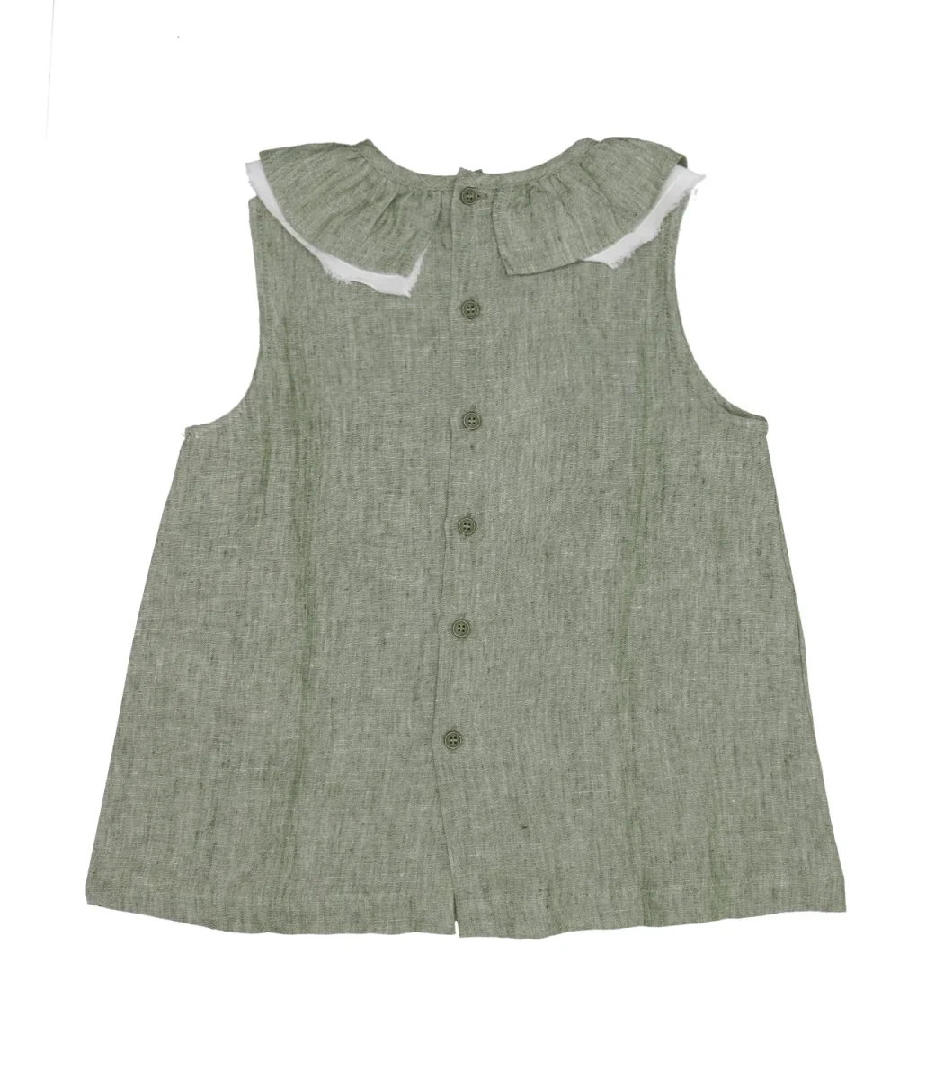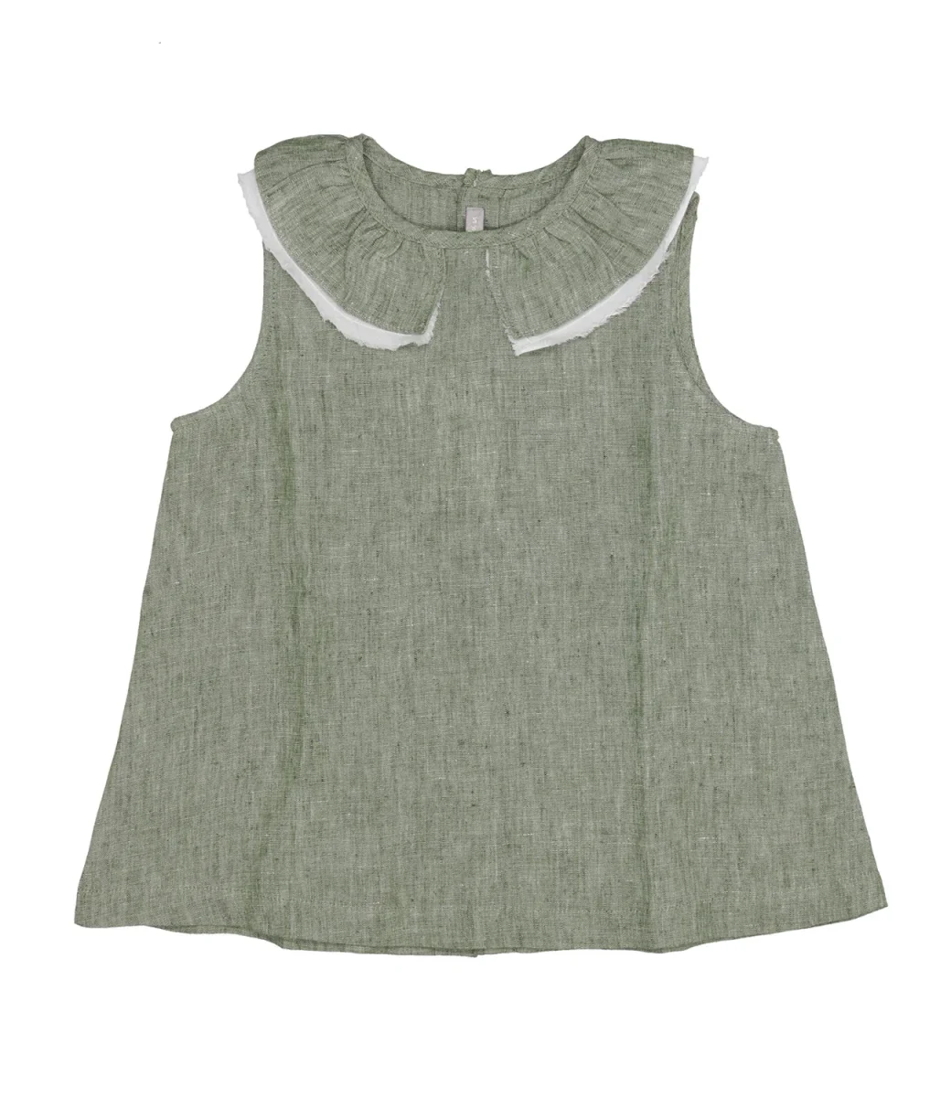 Camicia smanicata Il Gufo in cotone con rouches sul colletto.