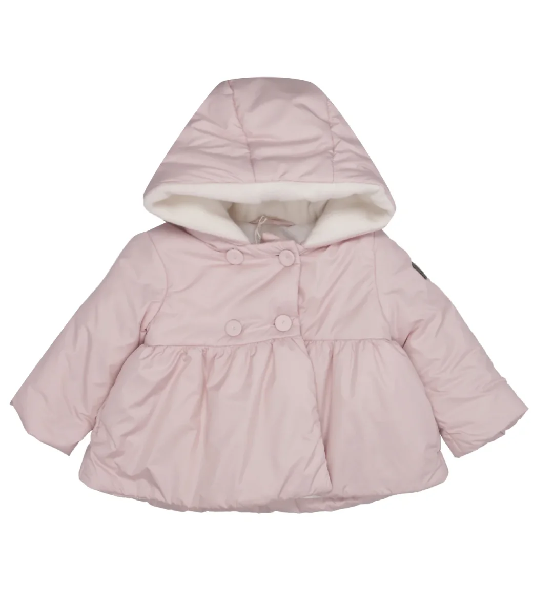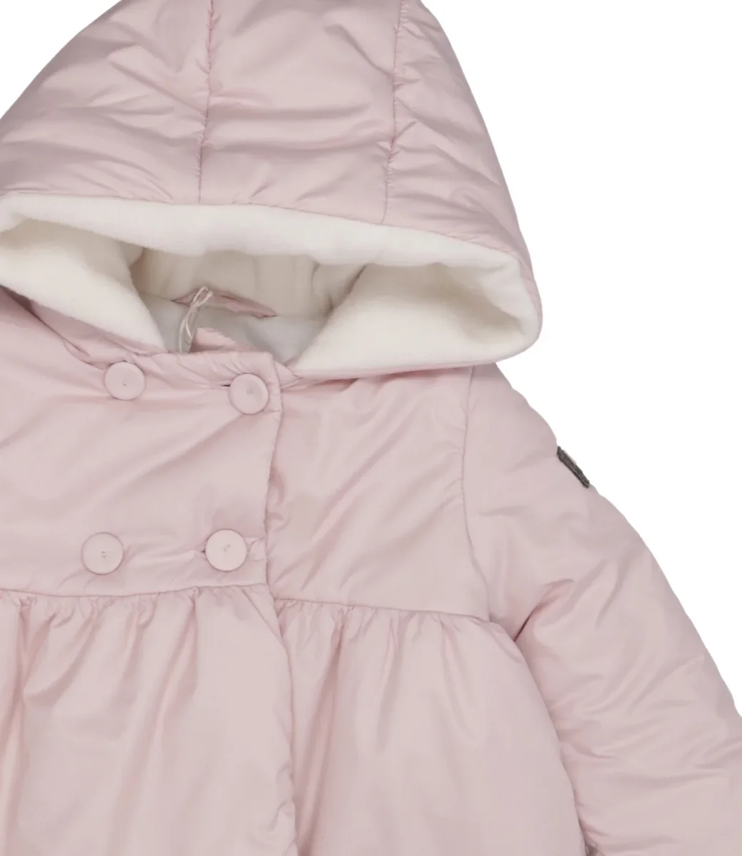 Cappotto Il Gufo in tessuto tecnico in microfibra SUPER MICROFT®, modello dalla linea svasata, con cappuccio foderato in eco-fur. Chiusura doppiopetto con bottoni rivestiti, tasche laterali a filetto, fodera interna in jersey di cotone ed eco-imbottitura in microvaltherm.