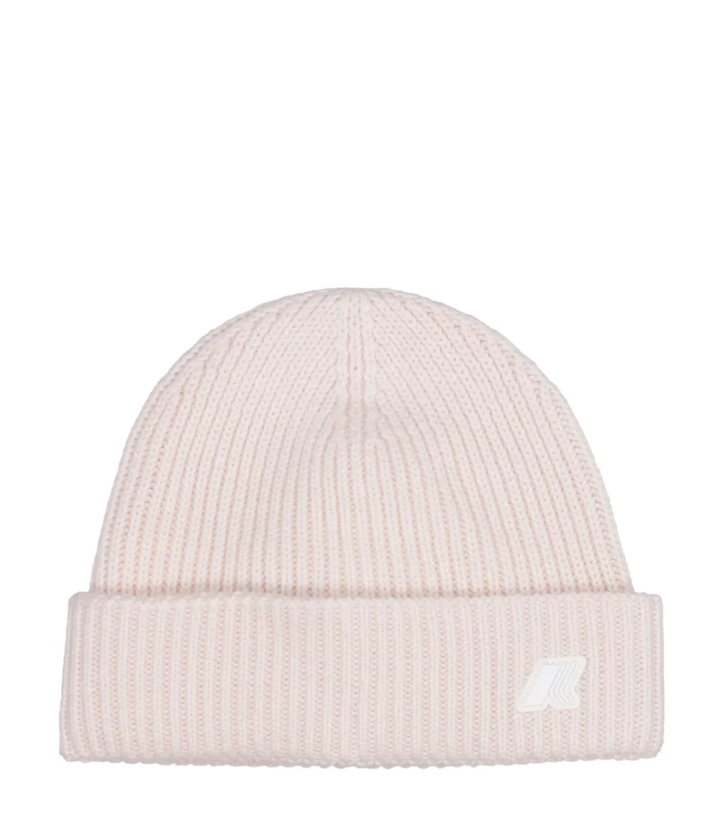 Cappello K-Way Kids E. Brice Cardigan Stitch realizzato in misto lana, lavorazione a costa inglese, con risvolto. Logo applicato sul davanti.