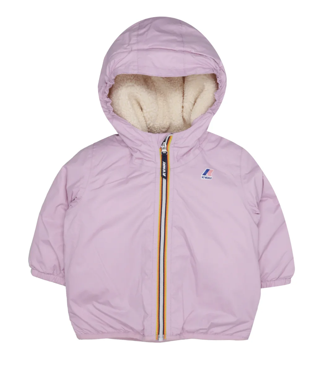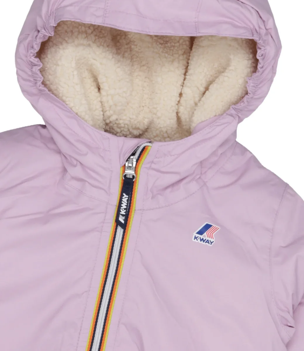 Giubbotto K-Way Kids modello E. Le Vrai 3.0 Claudine Orsetto. Realizzato in nylon ripstop impermeabile e antivento, il modello si caratterizza per l’imbottitura in ovatta dal peso medio e il rivestimento in tessuto soffice effetto sherpa, caldo e piacevole al tatto.