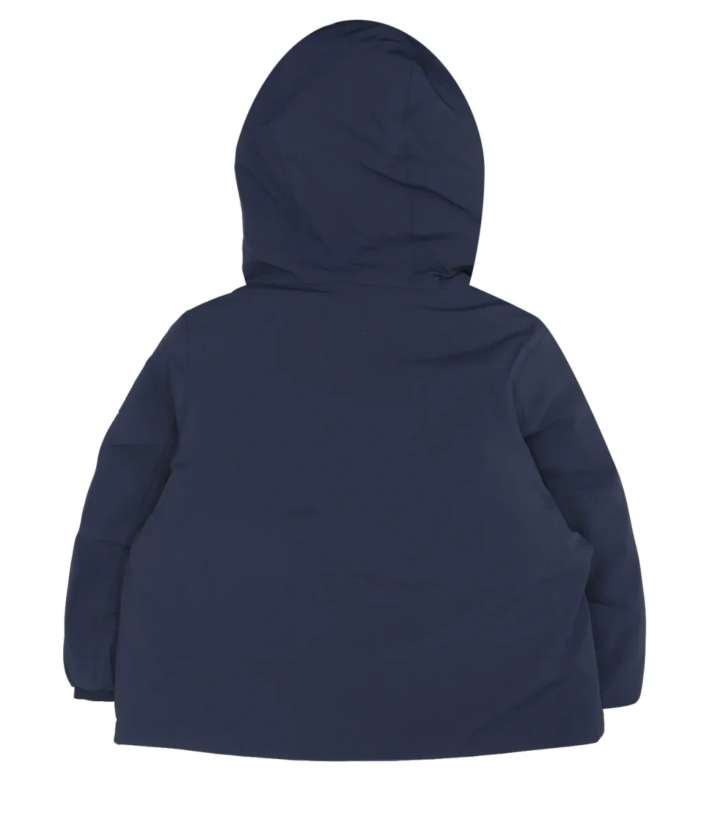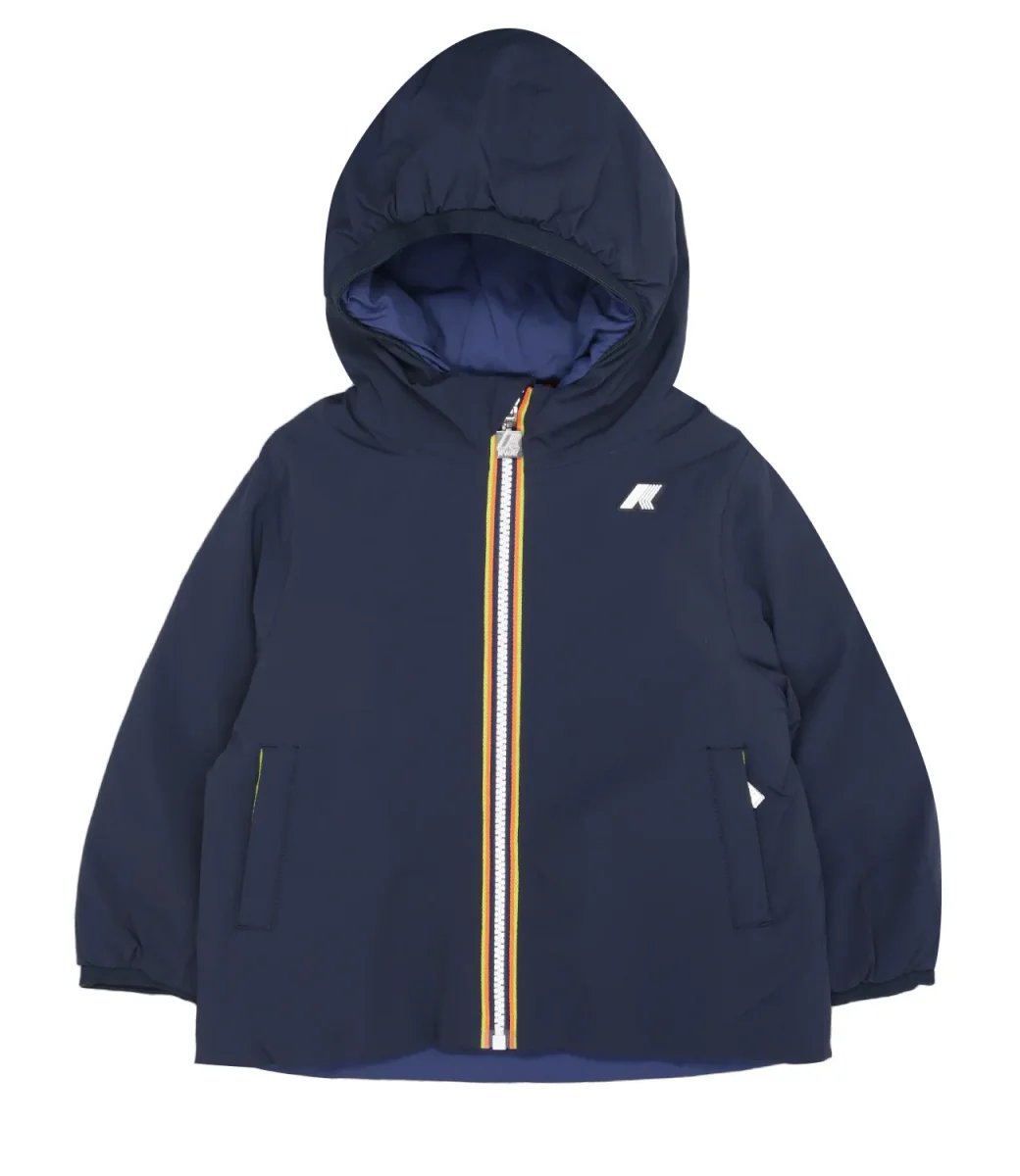 Giubbotto K-Way Kids modello P. Jack St warm Double design reversibile, in ripstop e tessuto tecnico, impermeabile, lato tessuto tecnico elasticizzato, antivento. Imbottitura in ovatta grado di calore medio, cuciture termonastrate.