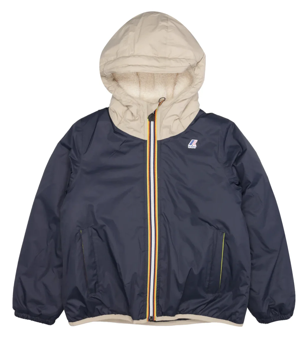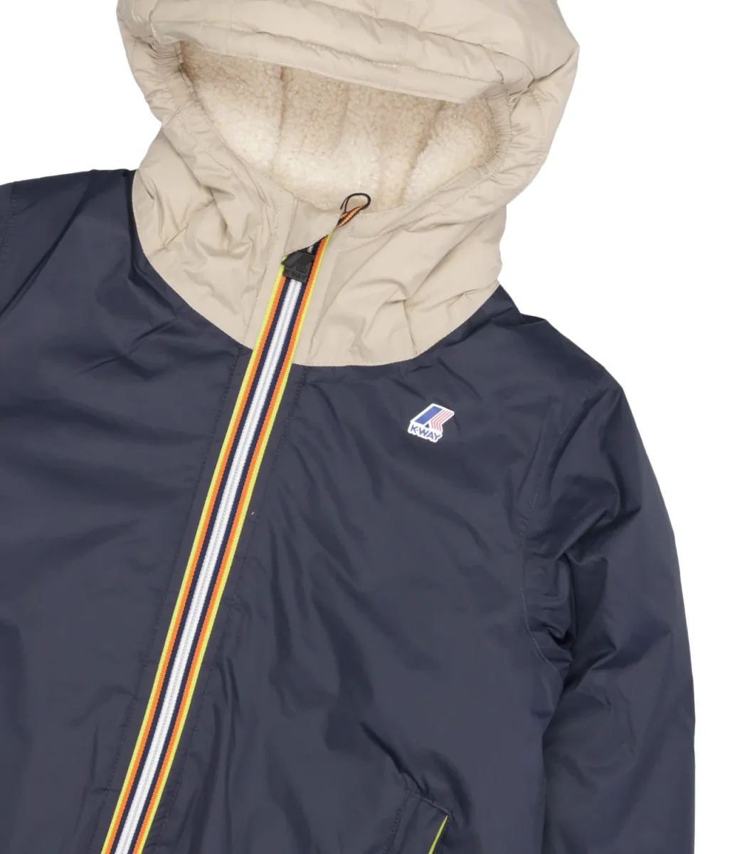 Giubbotto K-Way Kids modello P. Le Vrai 3.0 Claude Orsetto. Realizzato in nylon ripstop impermeabile e antivento, si caratterizza per l’imbottitura in ovatta dal peso medio e il rivestimento in tessuto soffice effetto teddy. Bicolore, maniche lunghe con polsini con elastico, fondo con elastico.