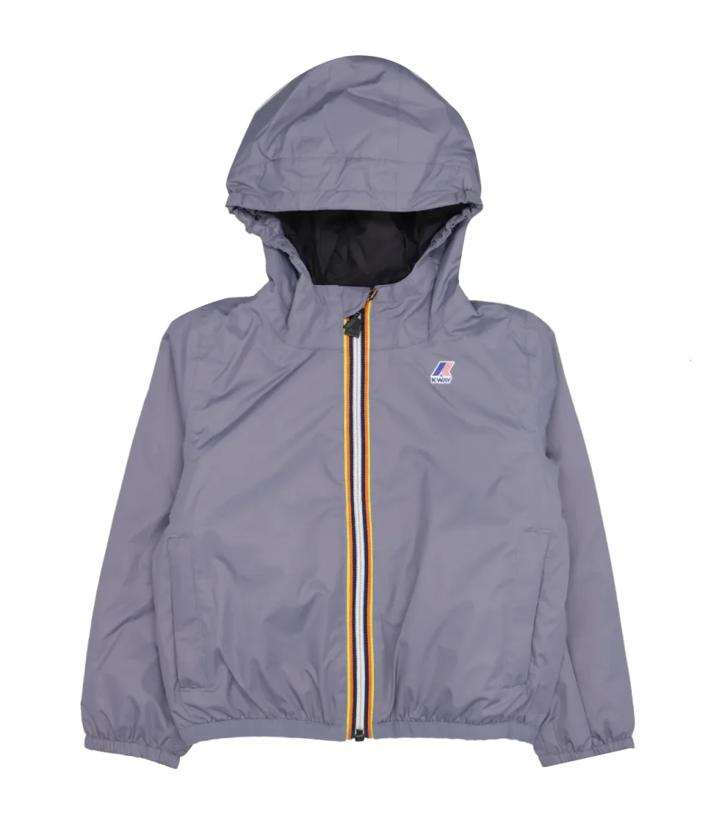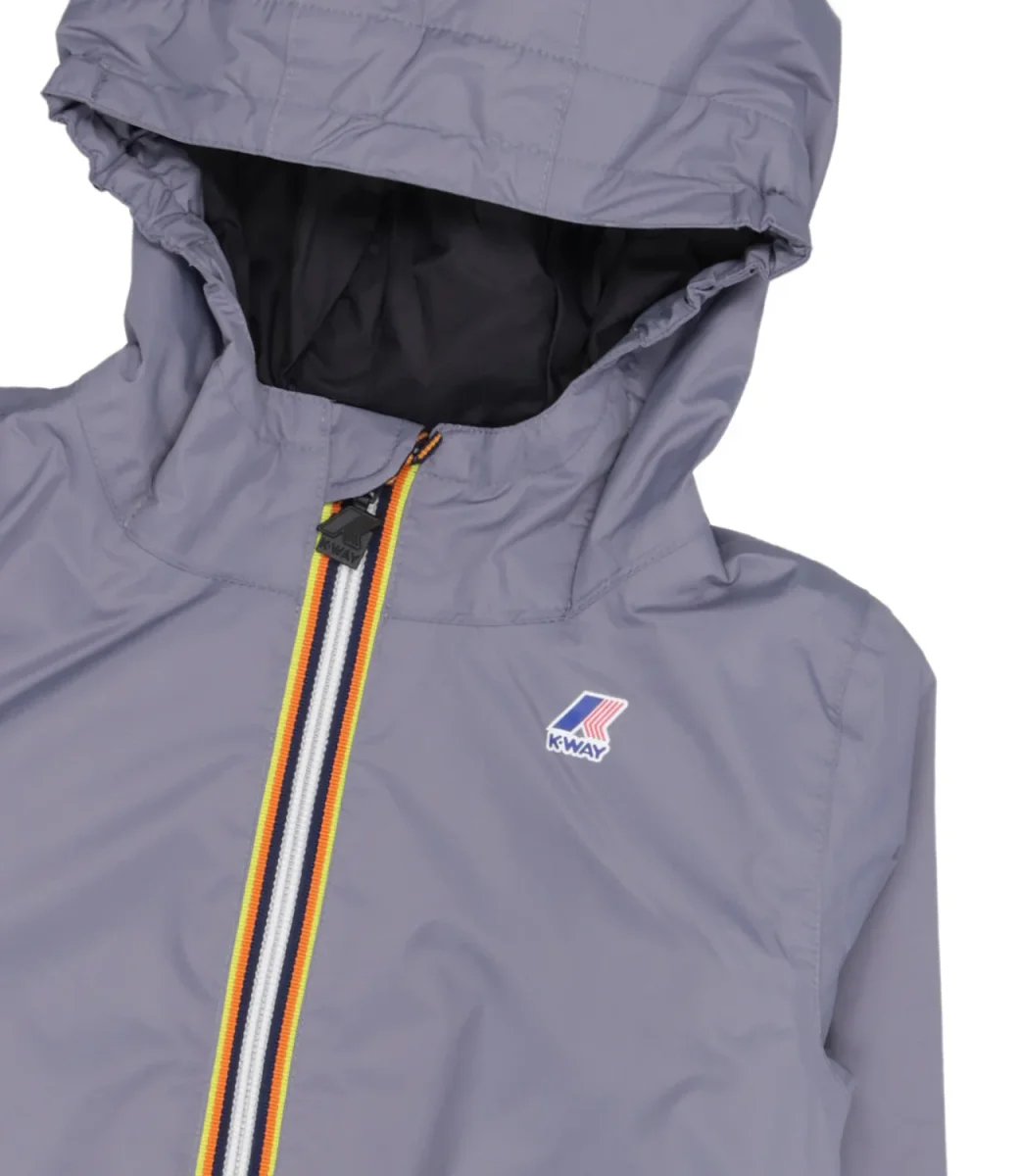 Giubbotto K-Way Kids modello P. Le Vrai 3.0 Claude Warm, in nylon ripstop, impermeabile, antivento, imbottitura ovatta peso leggero, cappuccio con elastici fissi, chiusura con zip, patta interna antivento, maniche lunghe con polsini con elastico. Logo stampato colorato.