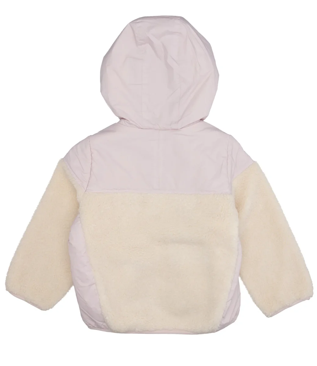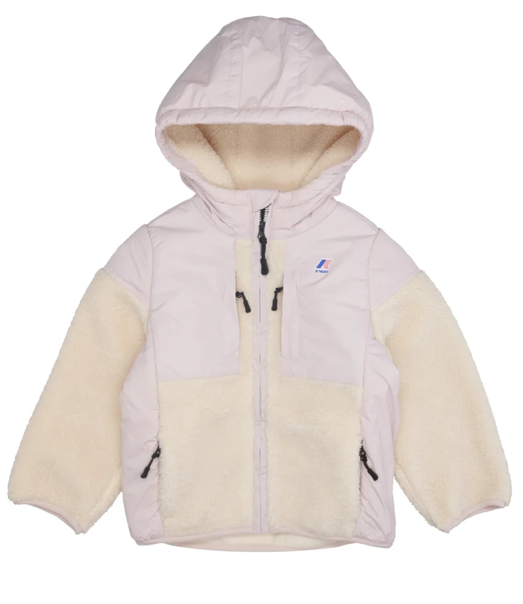 Giubbotto K-Way Kids P. Samson 4.0 Orsetto realizzata in tessuto effetto sherpa con inserti in nylon micro ripstop, traspirante e resistente all’acqua.