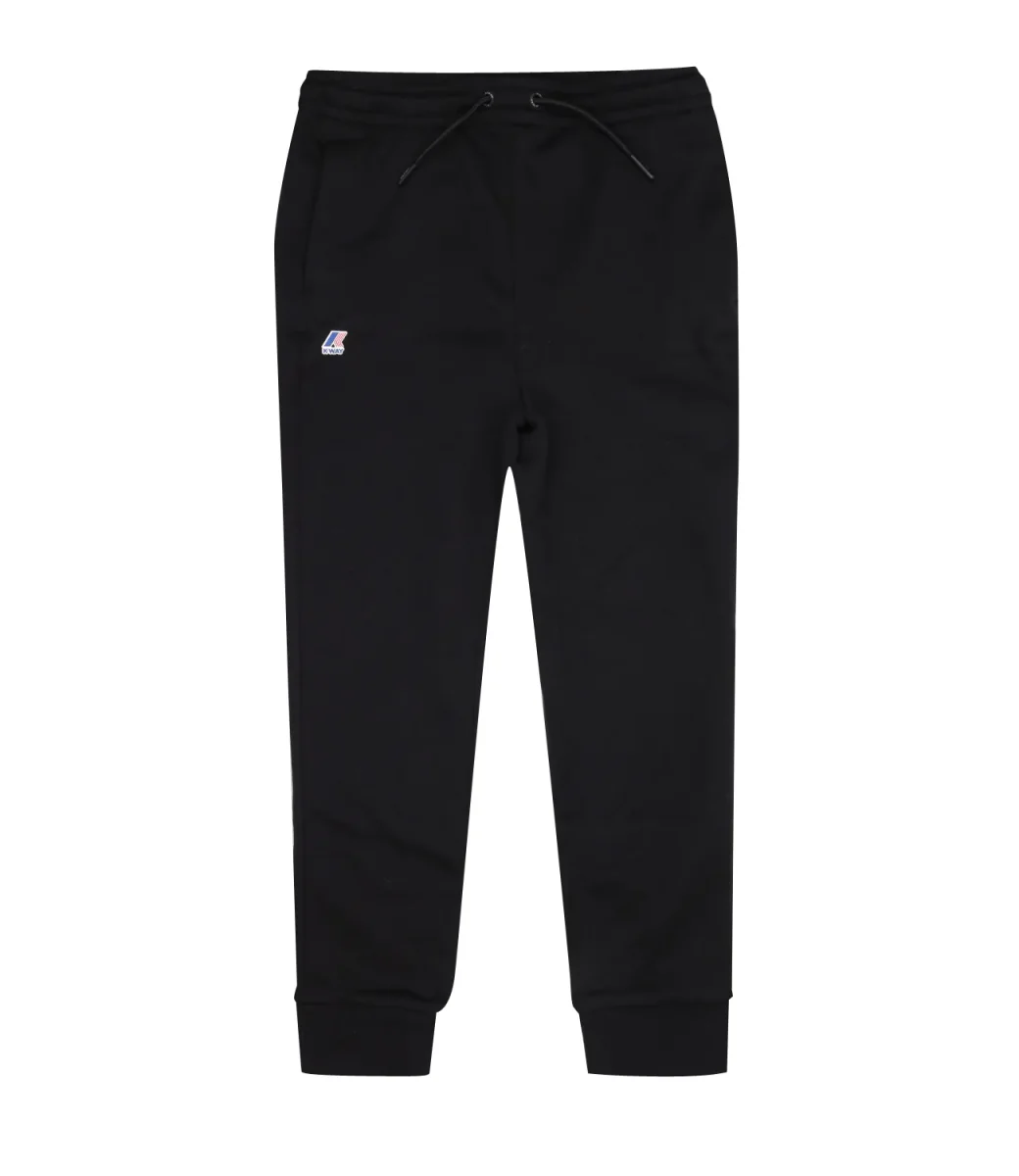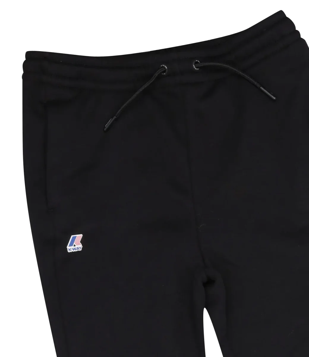 Pantalone sportivo K-Way Kids in cotone blu con vita elastica, coulisse, logo sulla gamba destra e polsini elastici
