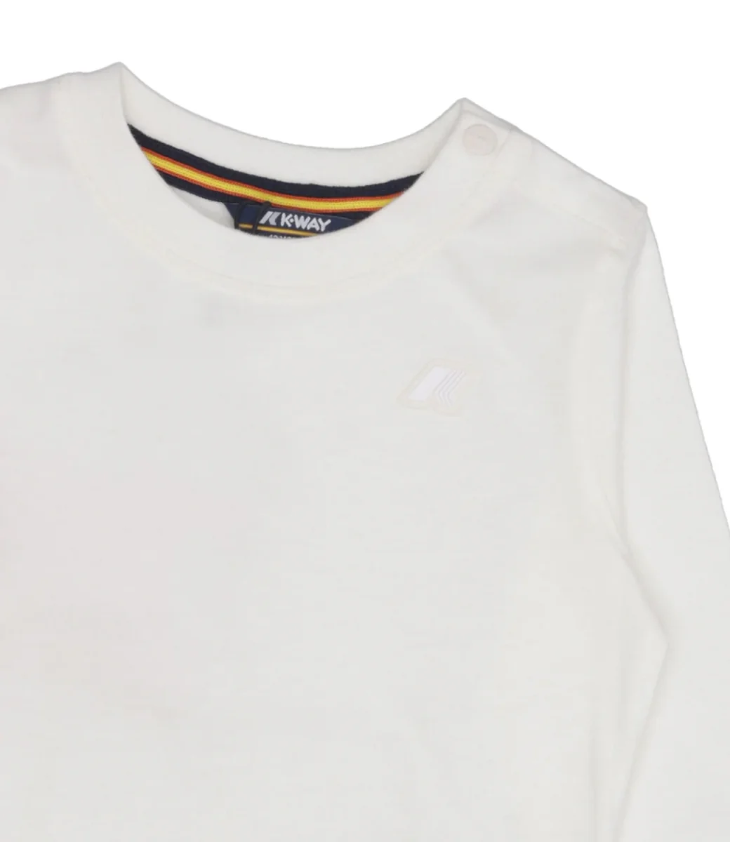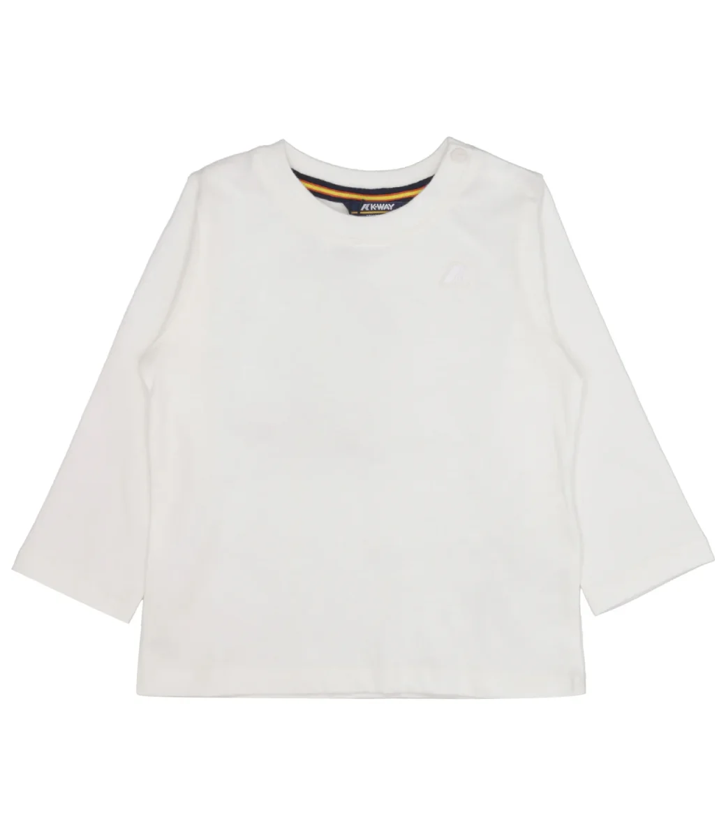 T-Shirt K-Way Kids E. Elmette Peach in cotone, girocollo, chiusura con bottoni automatici sulla spalla sinistra, maniche lunghe, fondo dritto, logo applicato sul torace lato sinistro.