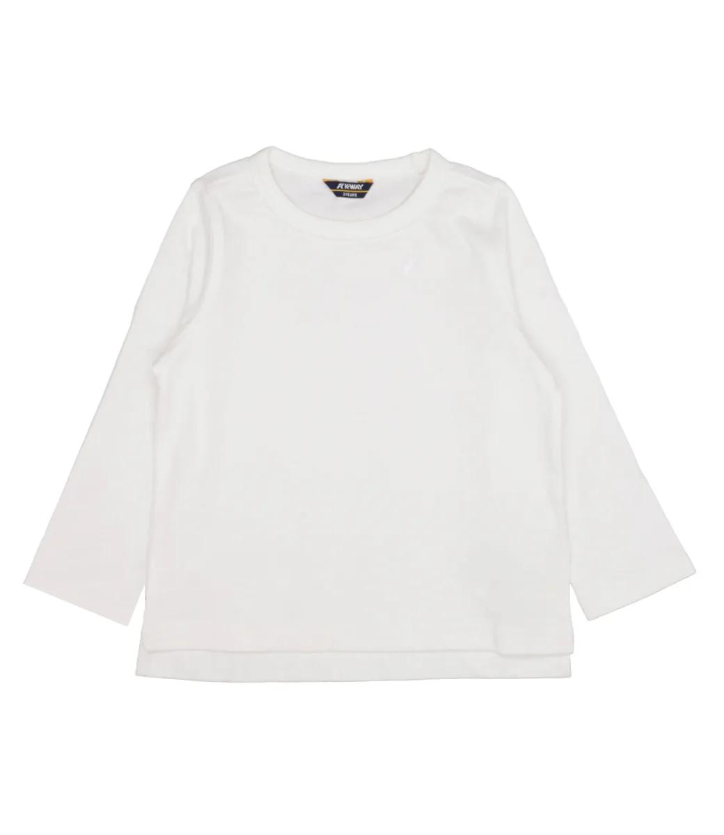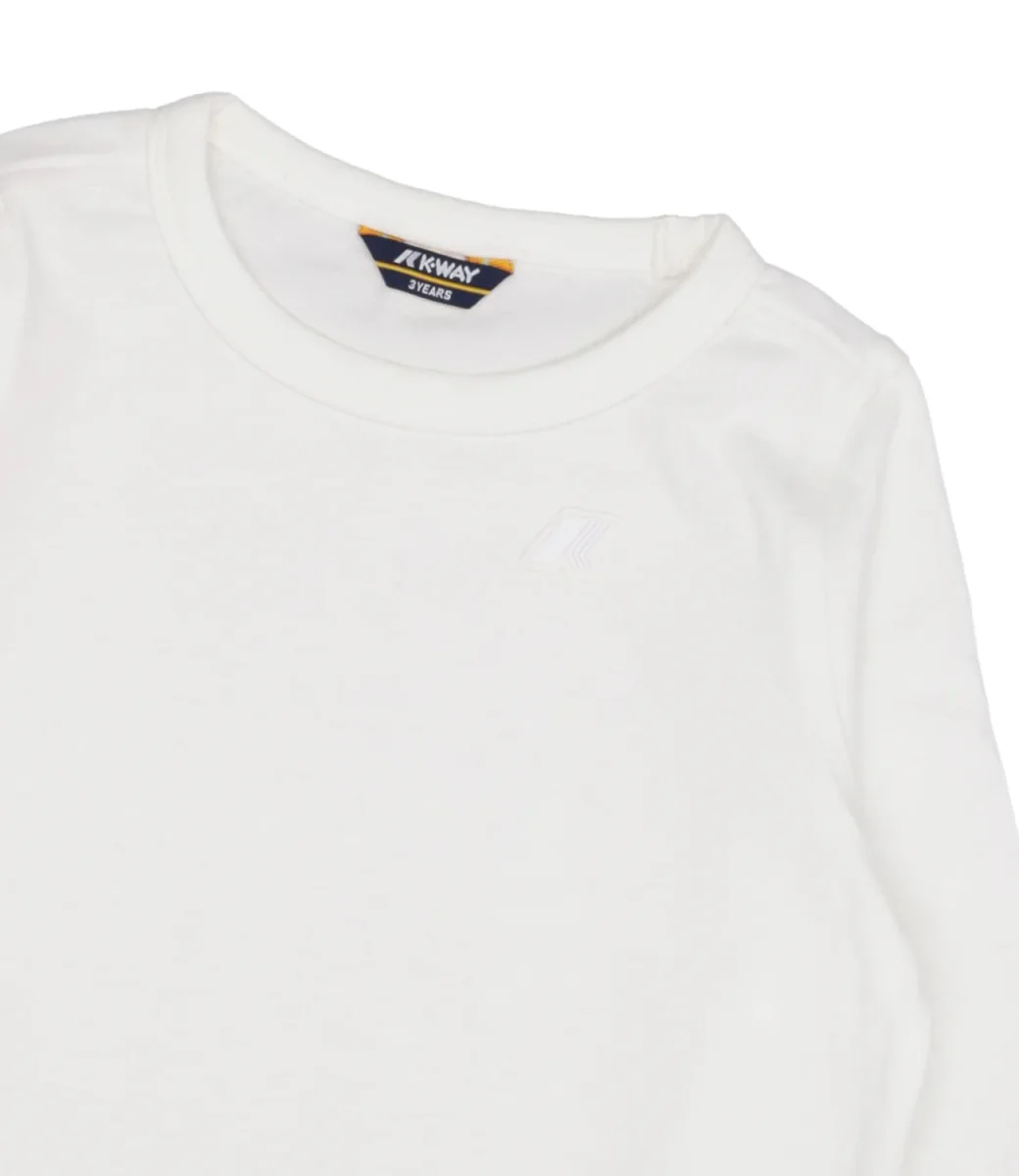 T-Shirt K-Way Kids P. Elmerine Peach in cotone, girocollo, con maniche lunghe, logo ricamato tono su tono sul petto lato sinistro, orlo dritto, spacchetti laterali, fondo sul retro più lungo
