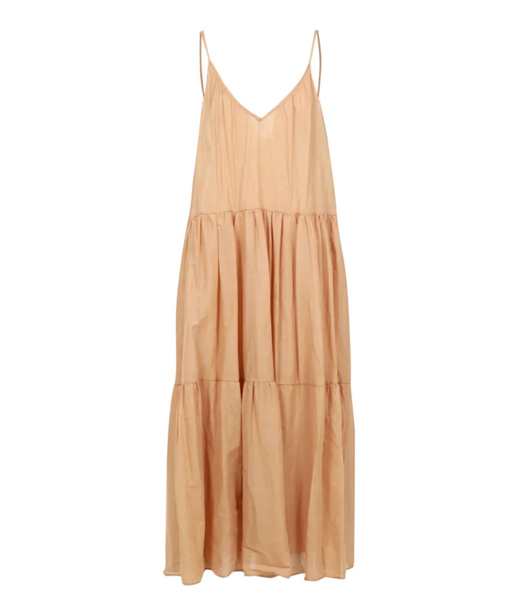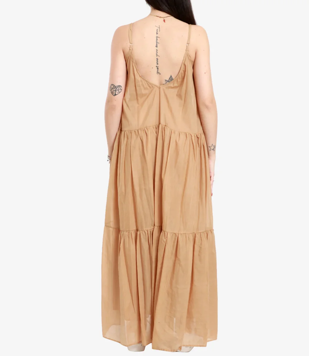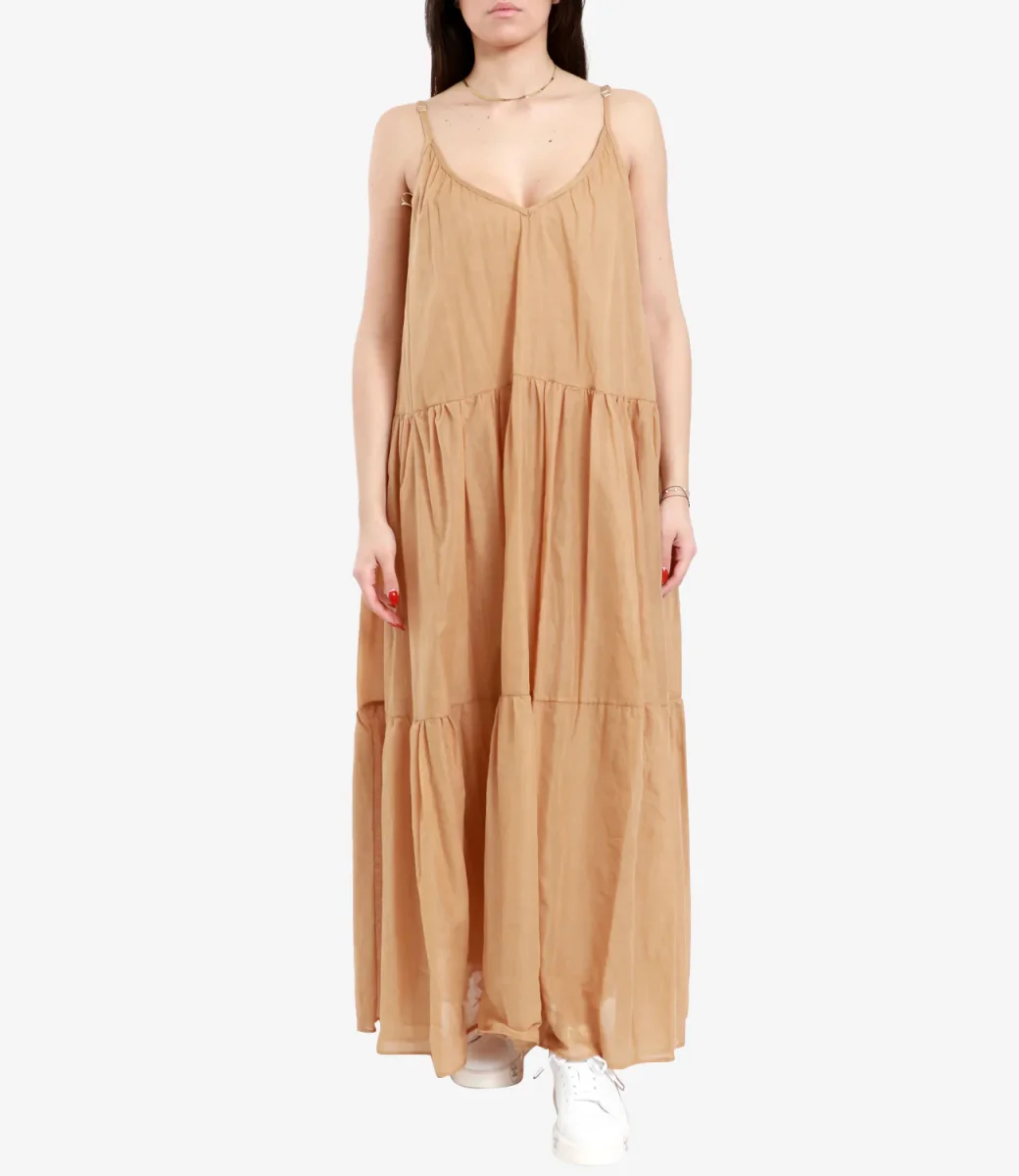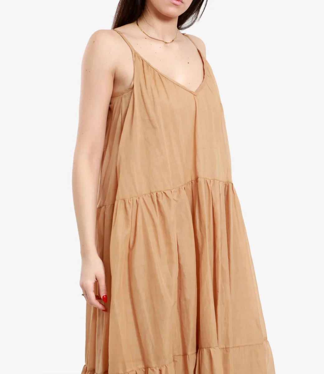 Dettagli:– Cotone– Scollo a v – Bretelle– Balze– Scollo sulla schiena