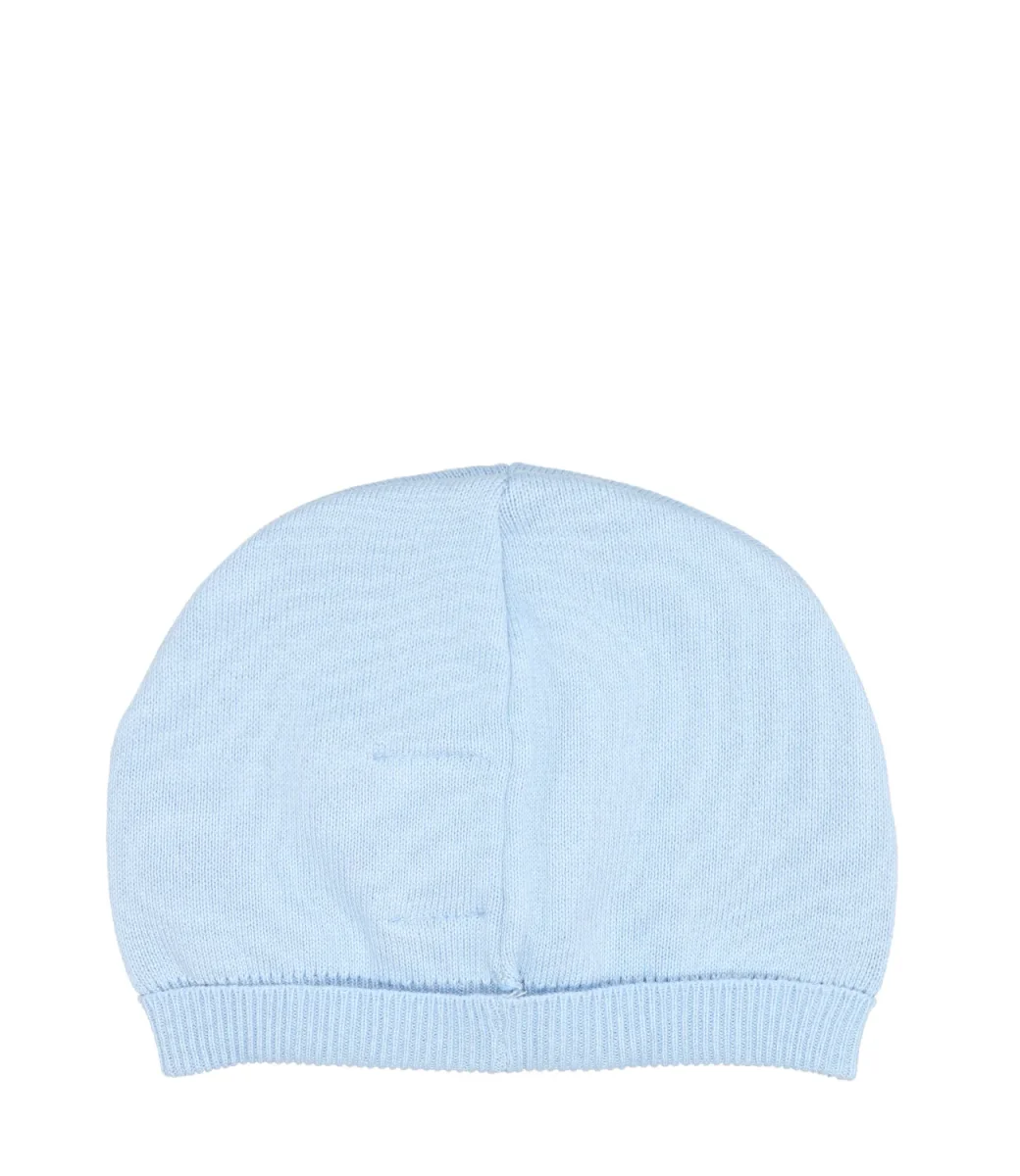 Cappello celeste con logo cucito davanti e bordo a costine.