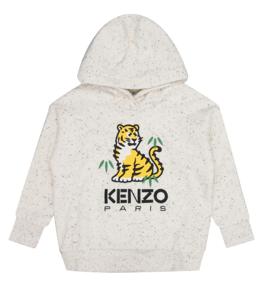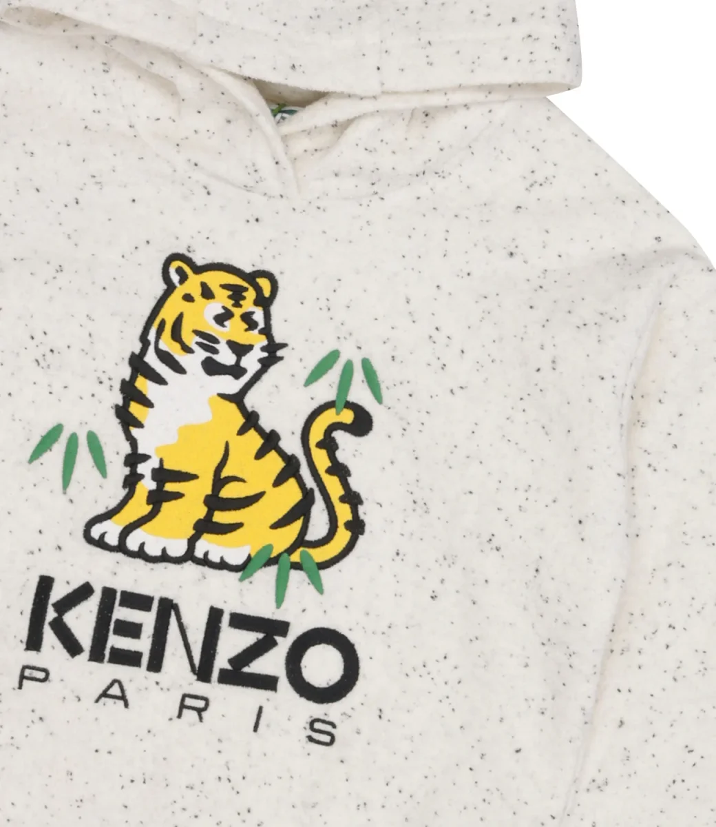 Felpa Kenzo Kids realizzata in punto raso di cotone, con cappuccio, giromanica sceso. maniche lunghe con polsino, stampa Tigre sul davanti.
