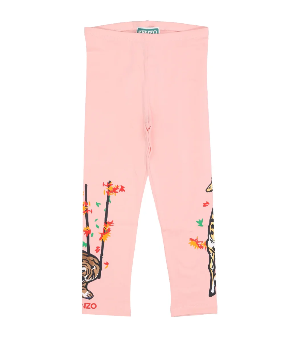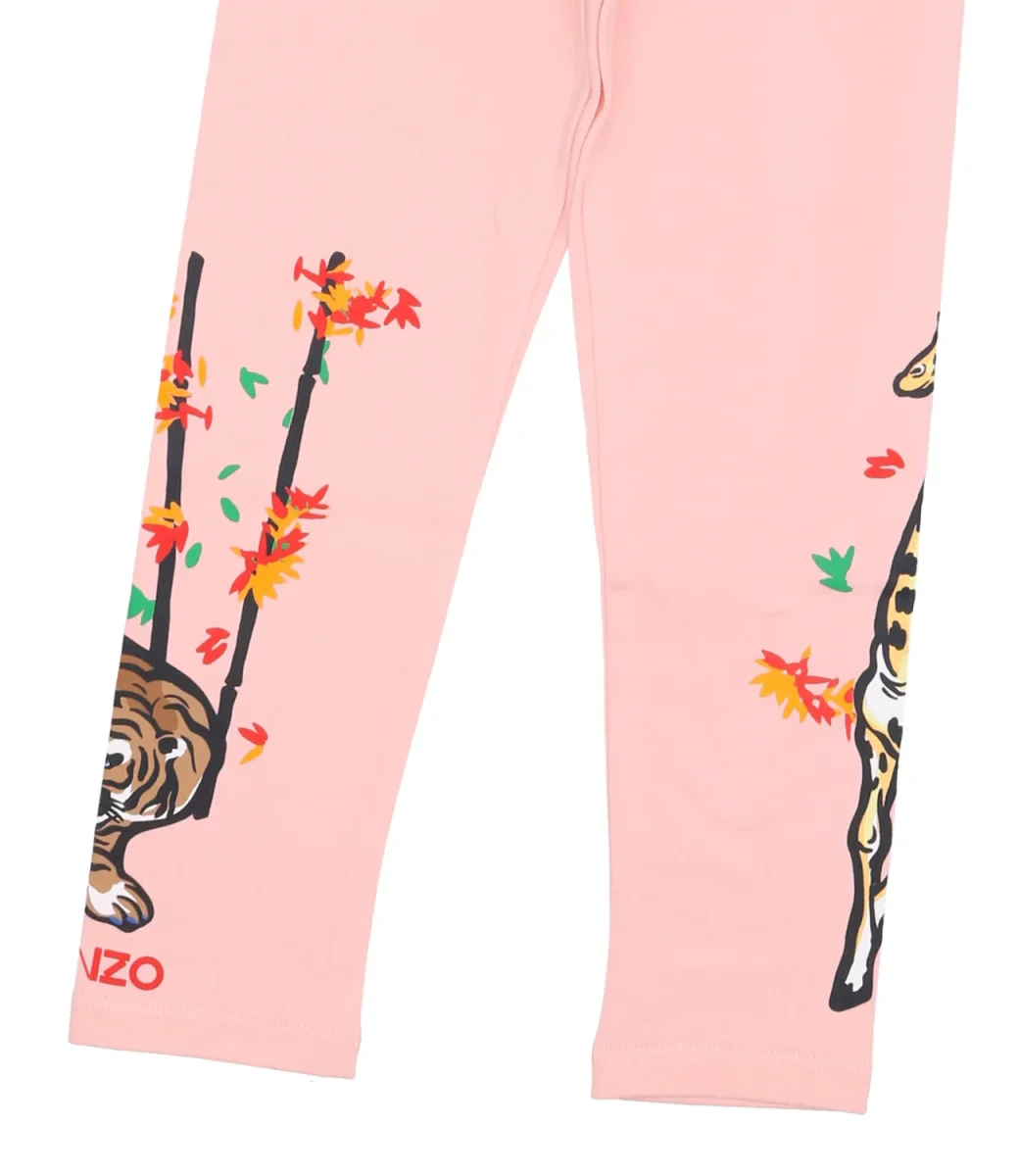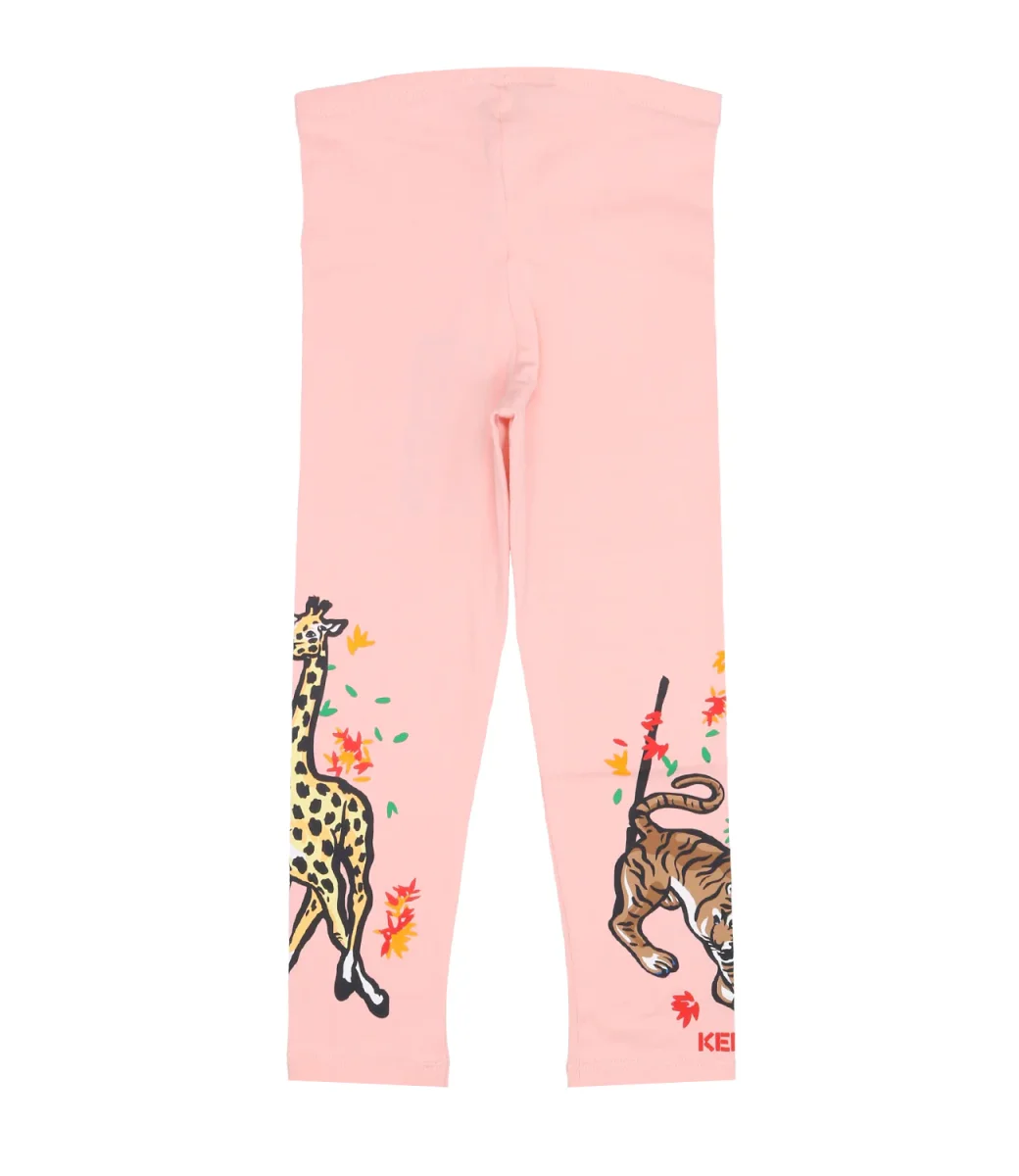 Leggins da bambina di cotone con stampa logo e decorazioni in fondo alle gambe.