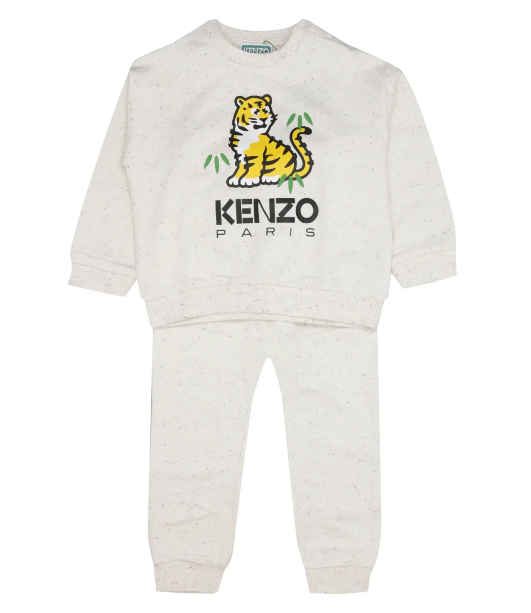 Set felpa e pantalone Kenzo Kids con logo frontale, stampa posteriore, girocollo e maniche lunghe, orlo, vita e polsini elastici.