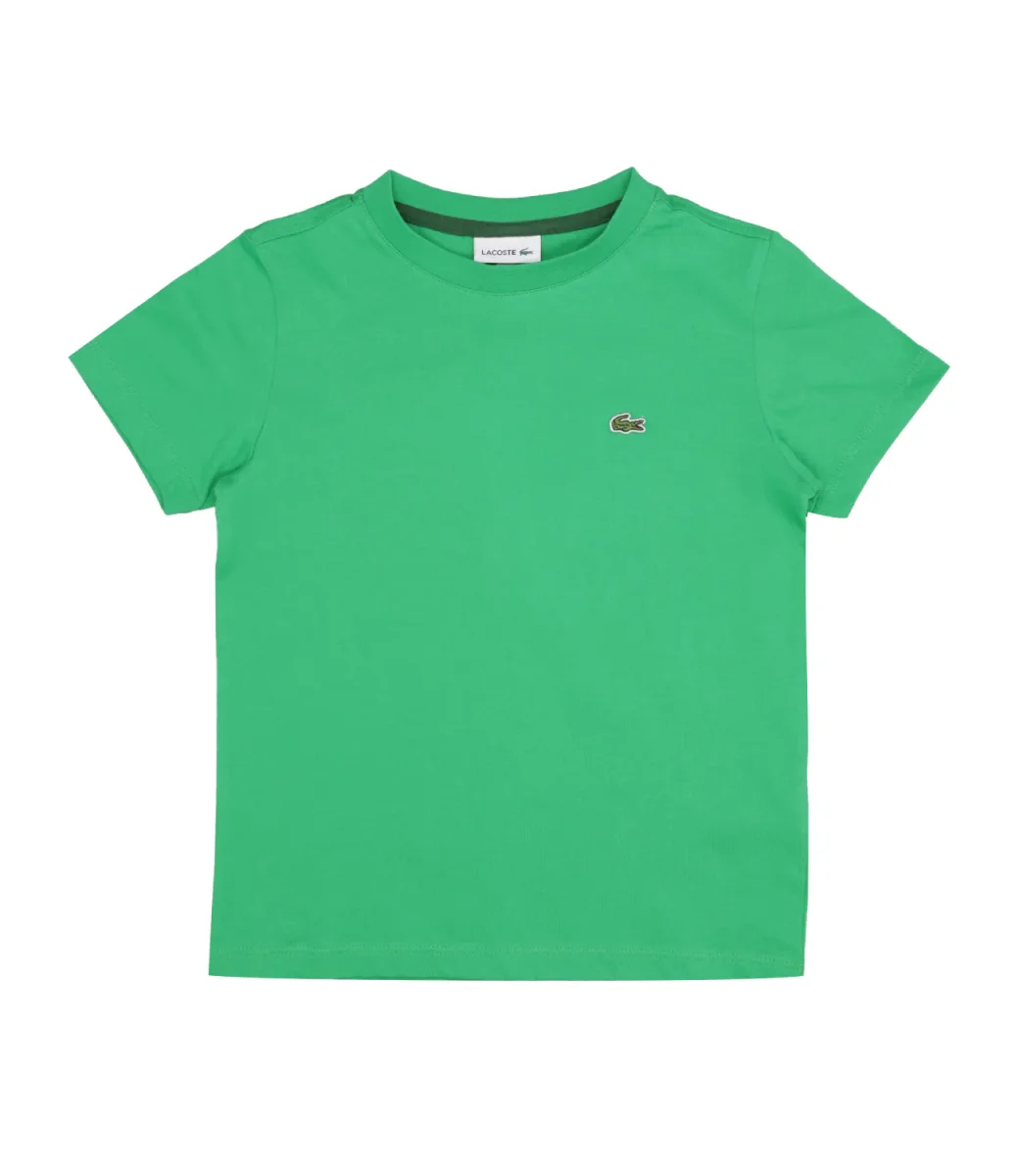 T-Shirt Lacoste Kids realizzata in cotone a trama liscia. Il capo per eccellenza che non deve mancare nel guardaroba. Iconico il coccodrillo verde sul petto per lo stile del brand.