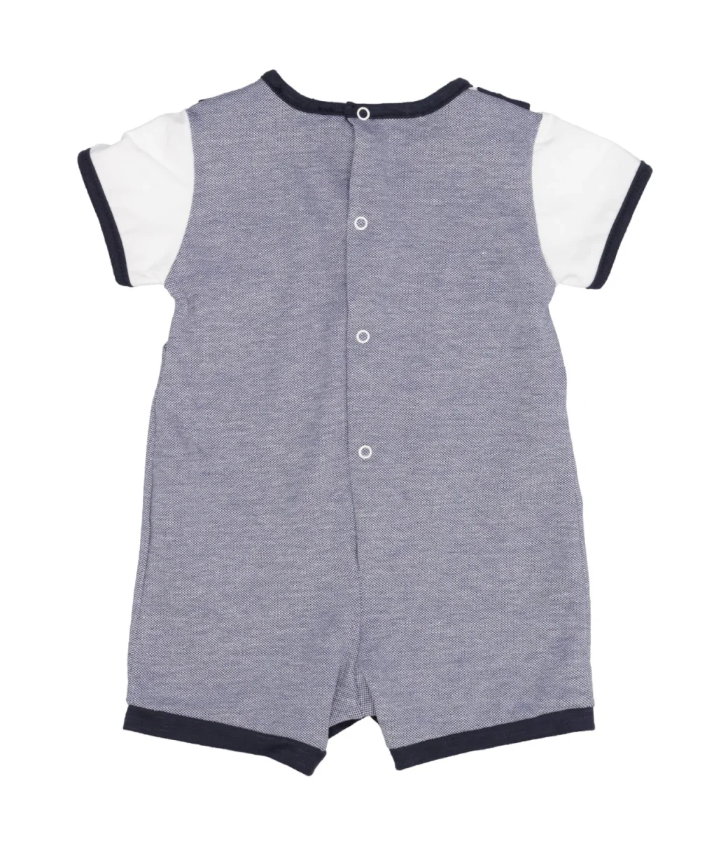 Dettagli:– Cotone– Girocollo– Maniche corte– Taschino frontale– Bretelle– Chiusura posteriore e inferiore con bottoni automatici