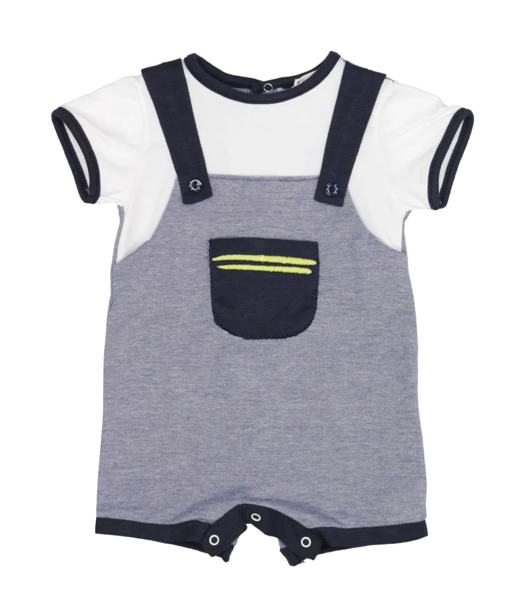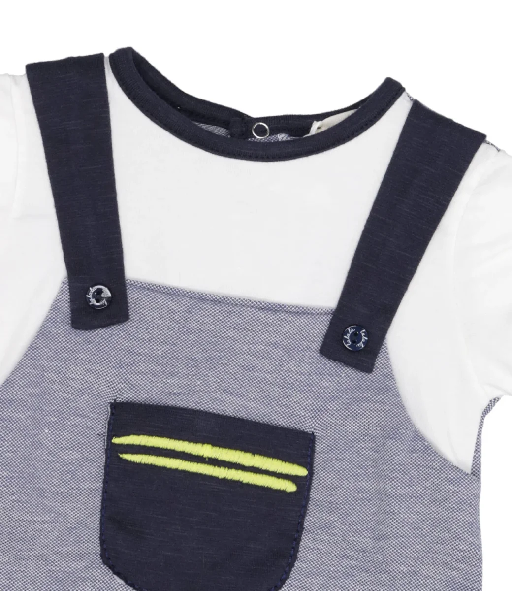 Pagliaccetto Lalalù in cotone con taschino frontale e bretelle.