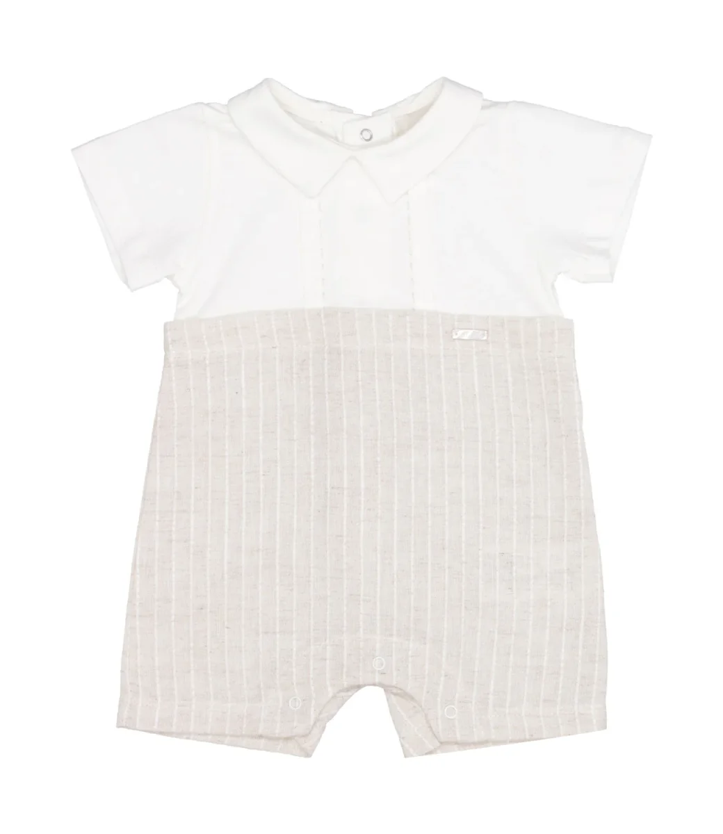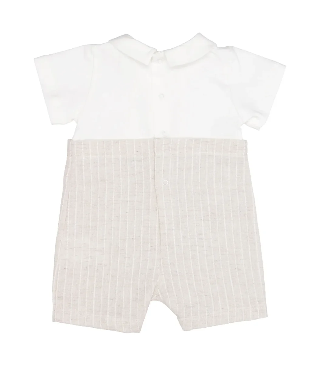 Dettagli:– Cotone– Colletto– Maniche corte– Pantalone rigato– Chiusura inferiore e posteriore con bottoni automatici
